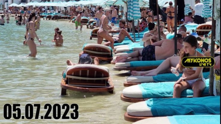 Όπως φαίνεται στο βίντεο του καναλιού, στις 5 Ιουλίου τα ομπρελοκαθίσματα βρίσκονταν κατά μήκος της ακτογραμμής, ενώ κάποιες ξαπλώστρες ήταν τοποθετημένες ακόμα και μέσα στο νερό!