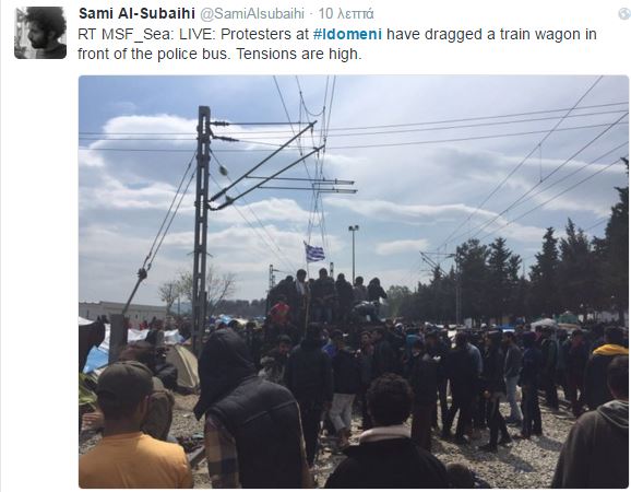 Τεταμένη είναι η κατάσταση στον καταυλισμό προσφύγων στην Ειδομένη, καθώς νωρίτερα πρόσφυγες και αλληλέγγυοι ανέβηκαν σε ένα παλιό βαγόνι και το έσπρωξαν από τον σιδηροδρομικό σταθμό της Ειδομένης μέχρι τη διάβαση όπου βρίσκονται παρατεταγμένες κλούβες της αστυνομίας.
