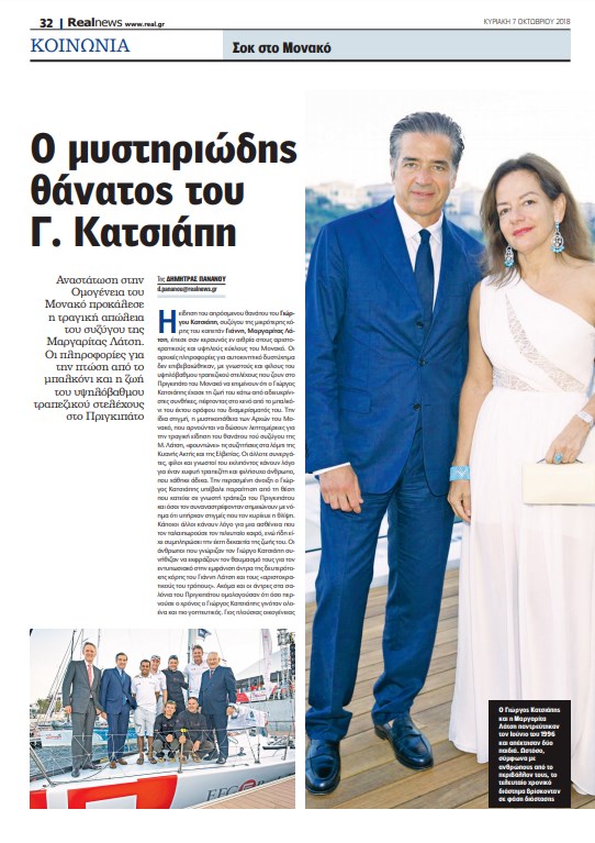 Η είδηση του απρόσμενου θανάτου του Γιώργου Κατσιάπη, συζύγου της μικρότερης κόρης του καπετάν Γιάννη, Μαργαρίτας Λάτση, έπεσε σαν κεραυνός εν αιθρία στους αριστοκρατικούς και υψηλούς κύκλους του Μονακό.