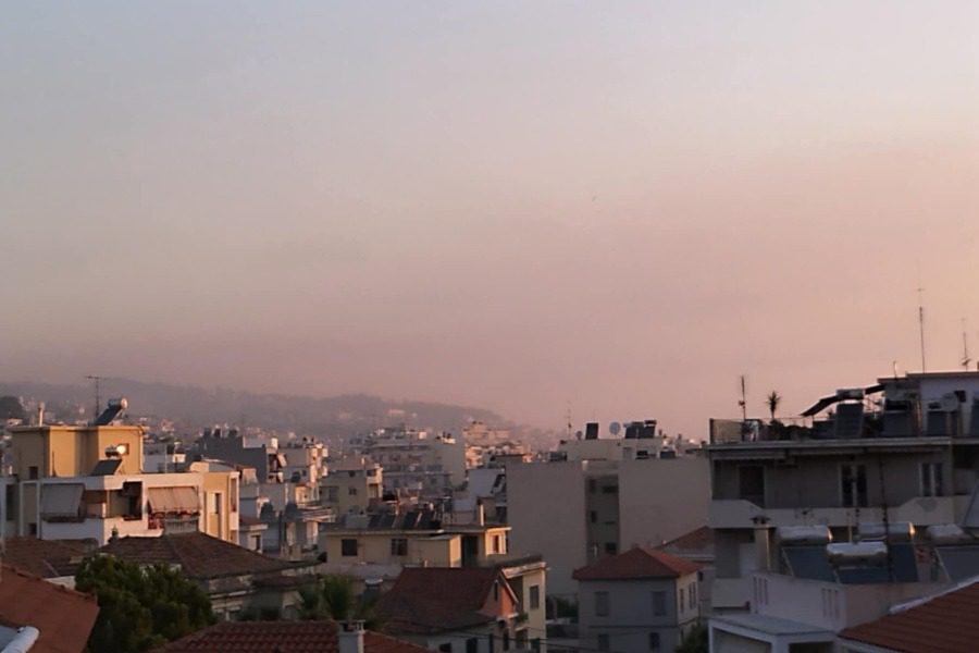 Η Πολιτική Προστασία έστειλε μηνύματα μέσω του 112 στους κατοίκους της Μυτιλήνης να παραμείνουν στο σπίτι με κλειστά τα παράθυρα.