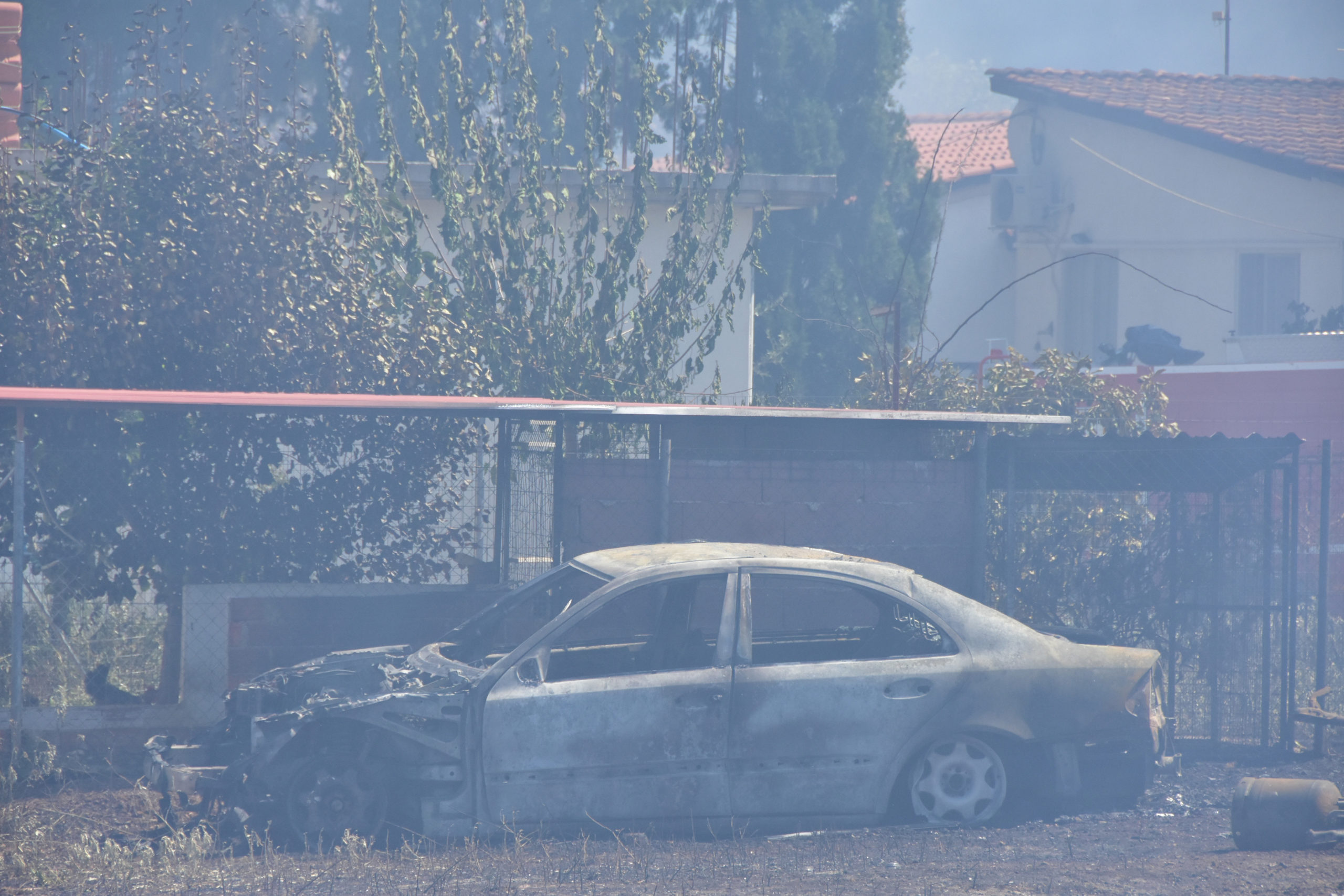Από τις φλόγες καταστράφηκε ολοσχερώς τουλάχιστον ένα αυτοκίνητο ενώ φθορές υπέστησαν αρκετές αυλές σπιτιών.