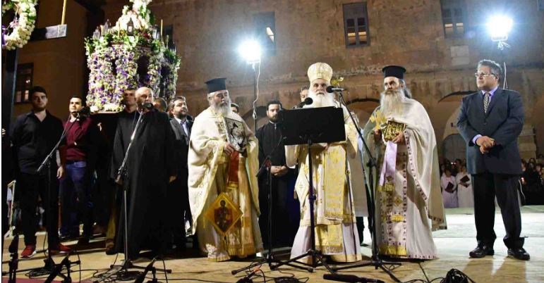 Προηγήθηκε η ακολουθία του Επιτάφιου στον Μητροπολιτικό ναό του Αγίου Γεωργίου χοροστατούντος του Μητροπολίτη Αργολίδος, παρουσία της πολιτικής και στρατιωτικής ηγεσίας της περιοχής.