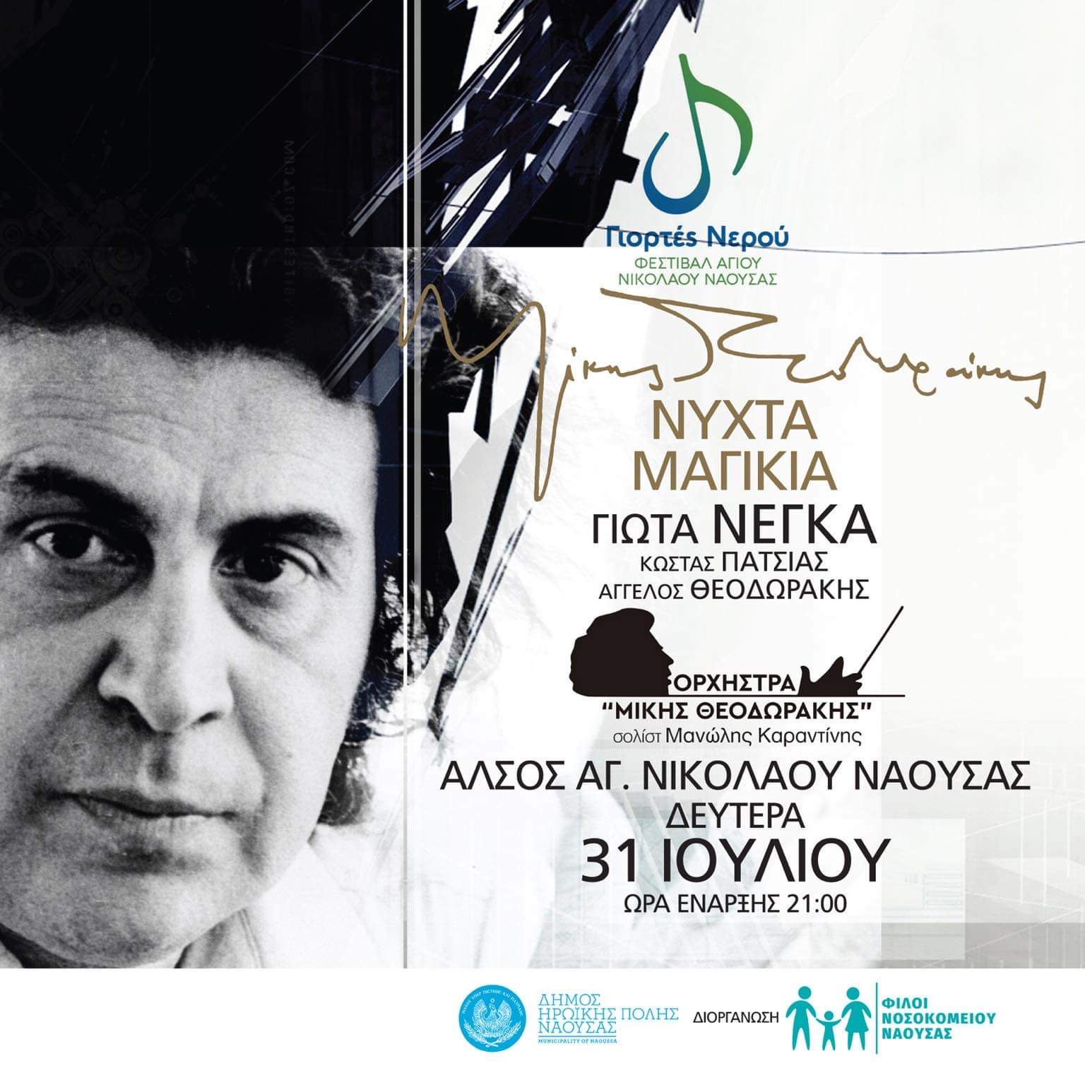 Μια ορχήστρα με μεγάλο όνομα και καταξιωμένους ερμηνευτές ανεβαίνουν στη σκηνή του Φεστιβάλ Αγίου Νικολάου «Γιορτές νερού» για μία μουσική πανδαισία με τα σπουδαία έργα του Μίκη Θεοδωράκη!