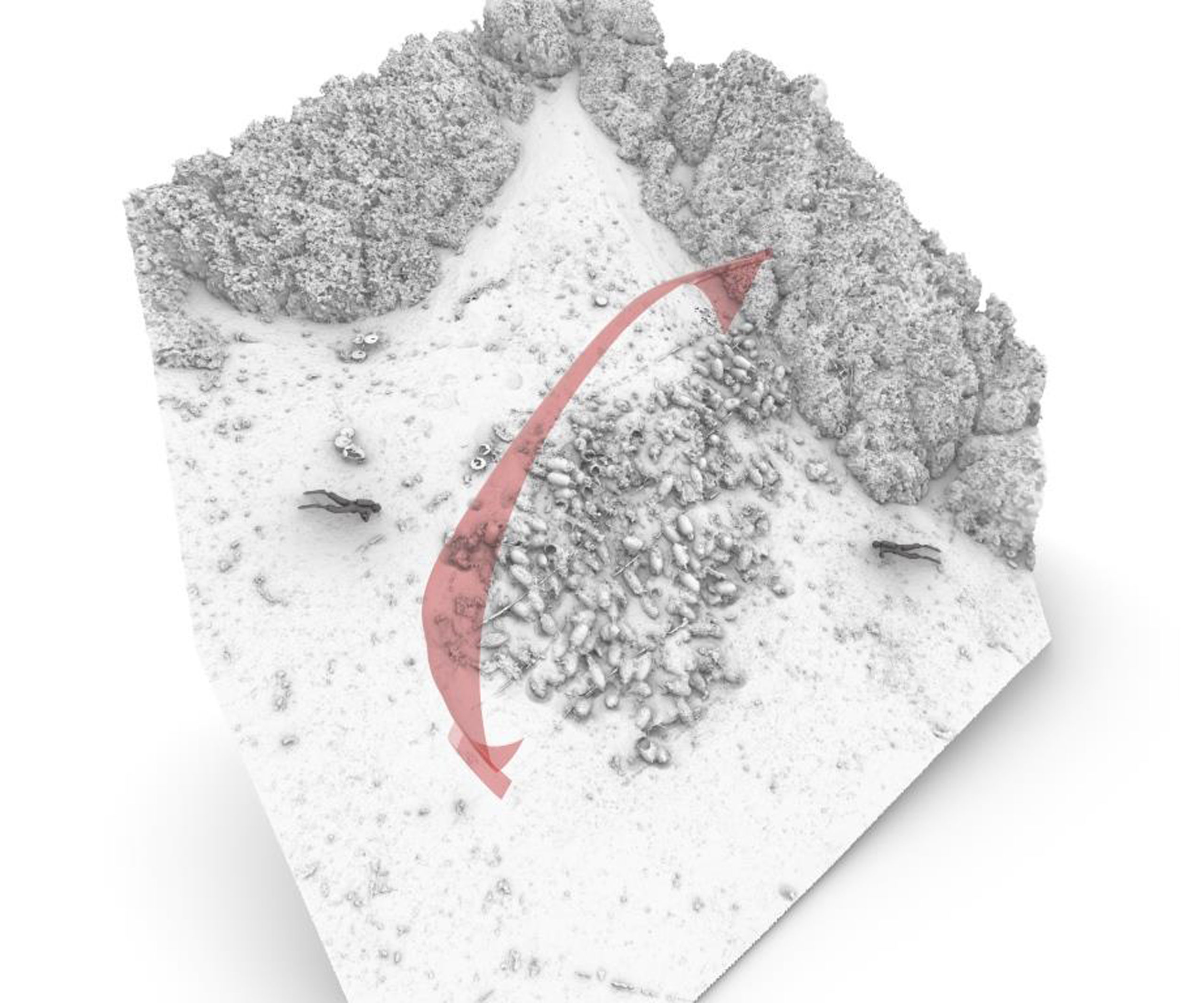 Η έρευνα του 2023 επικεντρώθηκε στον περιφερειακό καθαρισμό της δυτικής, ρηχότερης πλευράς του ναυαγίου από τις αποθέσεις άμμου, προκειμένου να αντιμετωπιστεί το φαινόμενο των κατολισθήσεων στον χώρο του ναυαγίου, λογγό της έντονης κλίσης του βυθού. Κατά τη διάρκεια της έρευνας, η οποία αντιμετώπισε πολλαπλές δυσκολίες, λόγω αντίξοων καιρικών συνθηκών, στο πρώτο δεκαπενθήμερο του Σεπτεμβρίου πραγματοποιήθηκαν 170 ομαδικές καταδύσεις και απομακρύνθηκαν 15 περίπου κυβικά μέτρα επιχωρίων, αποκαλύπτοντας μια εκτενή διασπορά φορτίου στην ρηχή πλευρά του ναυαγίου, κυρίως από συστοιχίες πινακίων. Η διασπορά των ευρημάτων στον βυθό φαίνεται να υποδηλώνει μια μερική απώλεια φορτίου, πριν το πλοίο βυθιστεί και καταλήξει στην τελική θέση απόθεσης, στη ζώνη των 40-50 μέτρων.