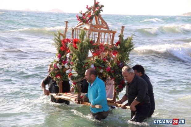 Πολλοί πιστοί παρακολούθησαν και φέτος την ακολουθία της Μεγάλης Παρασκευής και την περιφορά του Επιταφίου μέσα στη θάλασσα στην Νάξο.