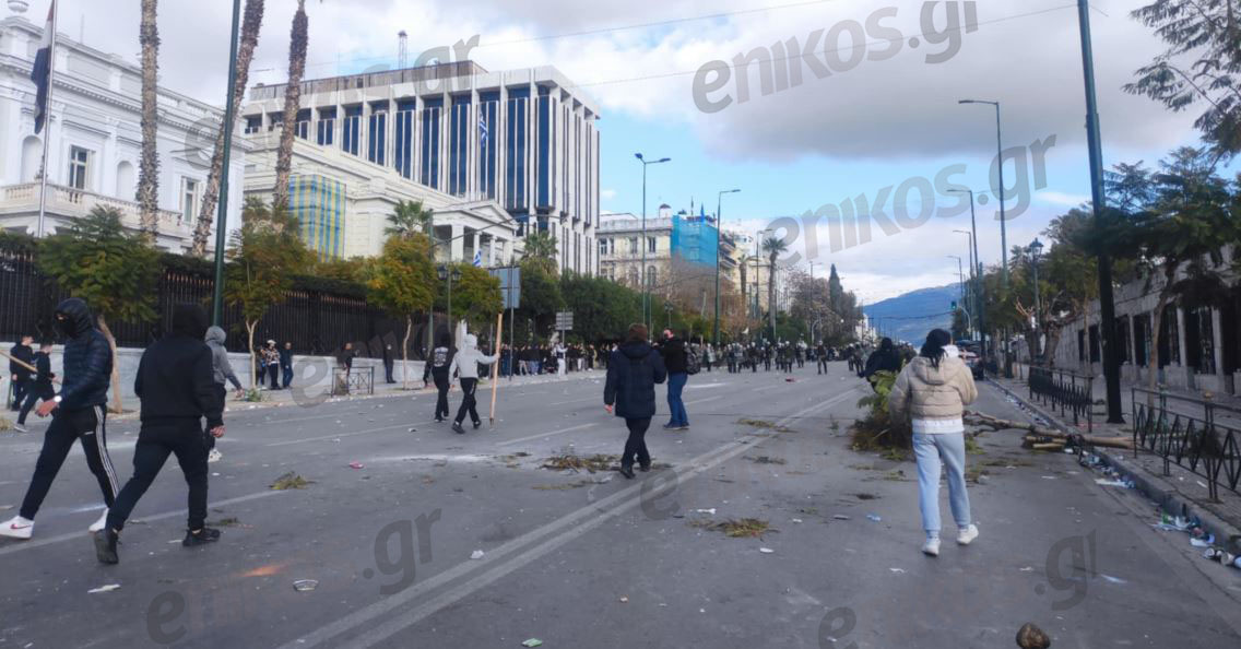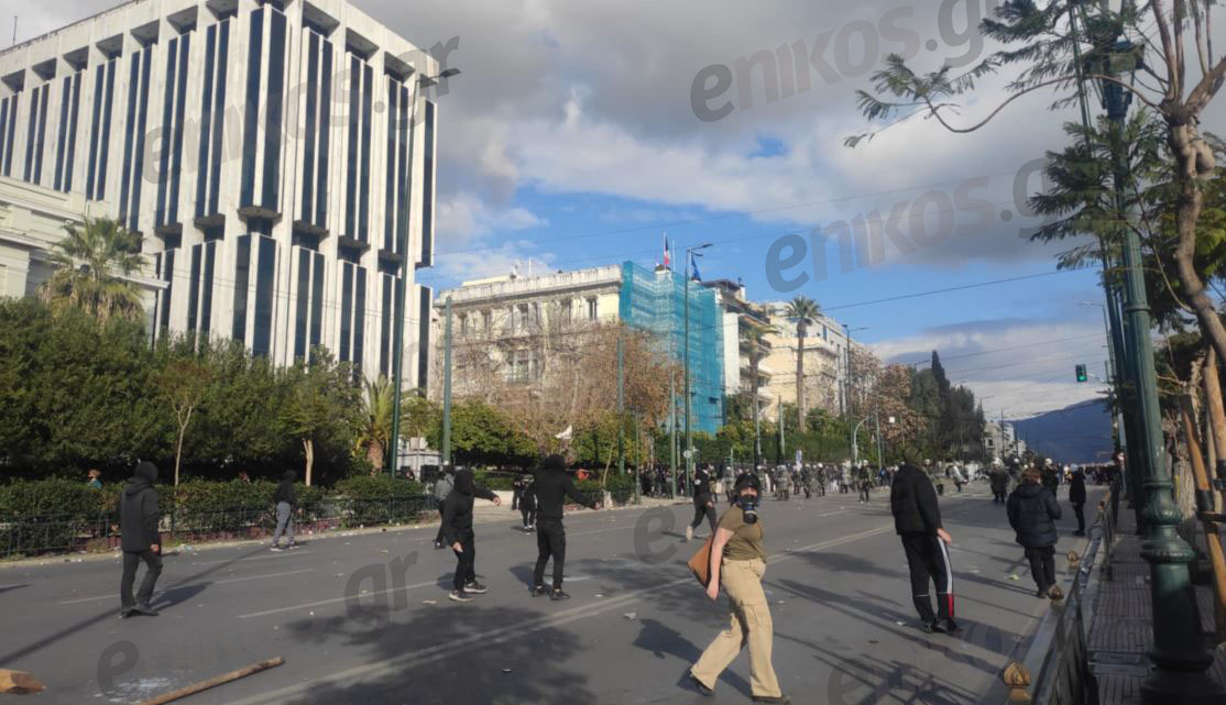 Σύμφωνα με την ΕΡΤ ακούστηκε κρότος πιθανώς από μολότοφ και στη συνέχεια σημειώθηκαν επεισόδια.