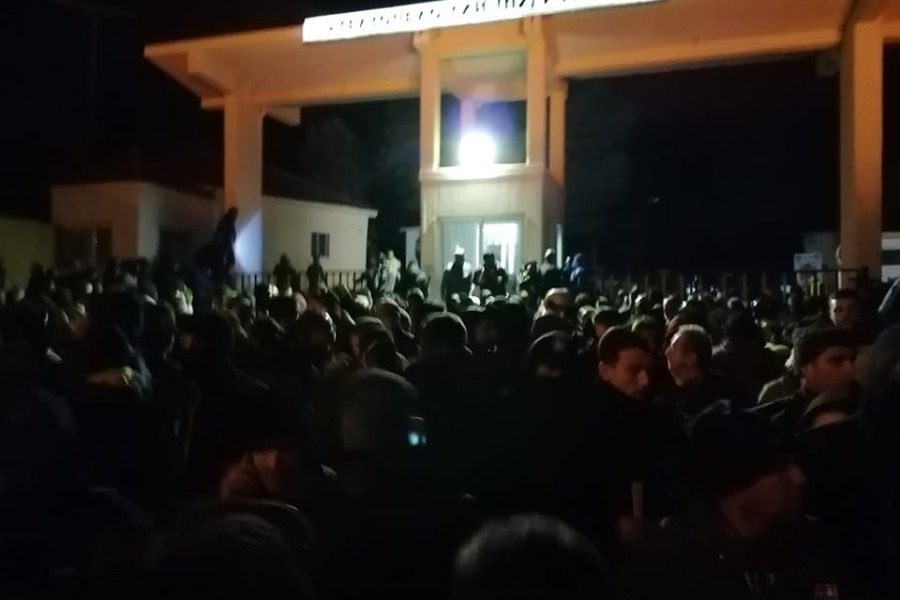Σύμφωνα με το ΑΠΕ-ΜΠΕ, οι πολίτες έσπασαν την πύλη του στρατοπέδου, άναψαν φωτιές και σημειώνονται επεισόδια.