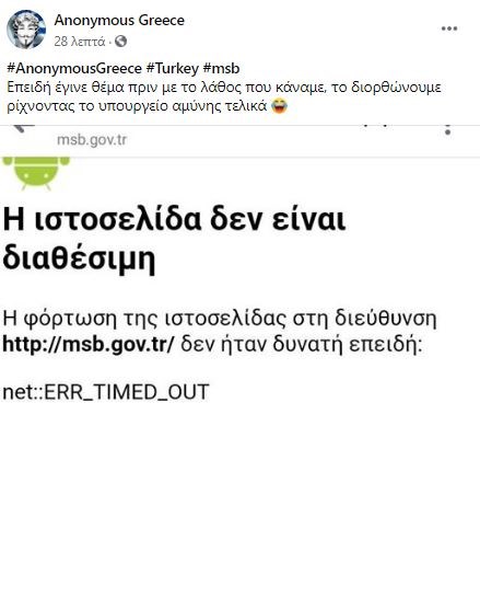 Όπως αναφέρουν σε νέα ανάρτησή τους, έριξαν τη σελίδα του υπουργείου Αμύνης.