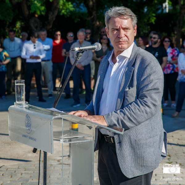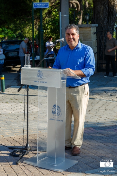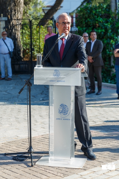 Ο Αντιδήμαρχος Δ. Ε. Νέας Ερυθραίας και Ύδρευσης του Δήμου Κηφισιάς Μιχάλης Καυγαλάκης, που είχε και την ευθύνη της διαμόρφωσης της πλατείας ευχαρίστησε τους παρευρισκόμενους και προσκάλεσε τον Υπουργό Παιδείας κ. Κίττα να κάνει τα αποκαλυπτήρια της μαρμάρινης πλάκας.
