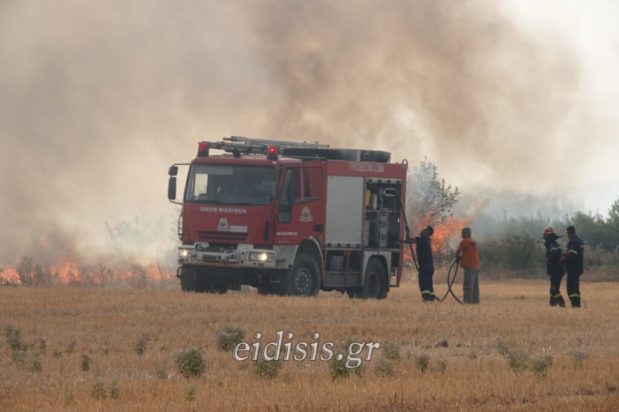 Σύμφωνα με πληροφορίες, η πυρκαγιά καίει γεωργικές εκτάσεις και στο σημείο επιχειρούν 16 πυροσβέστες με οκτώ οχήματα της Πυροσβεστικής Υπηρεσίας.