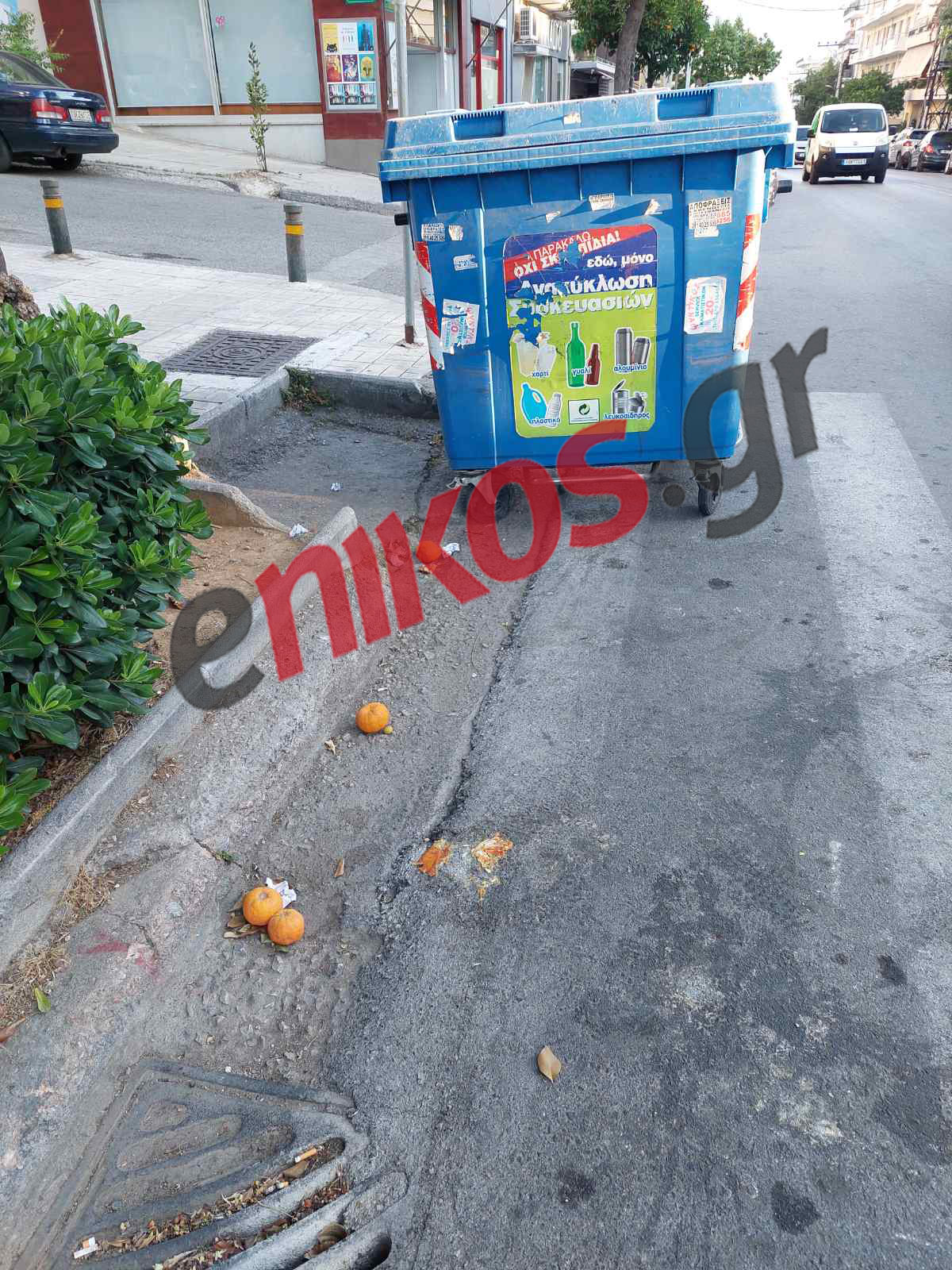 Στις φωτογραφίες που μας έστειλε αναγνώστης του enikos.gr φαίνεται η θέση του μπλε κάδου ανακύκλωσης να βρίσκεται επάνω στη διάβαση των πεζών.
