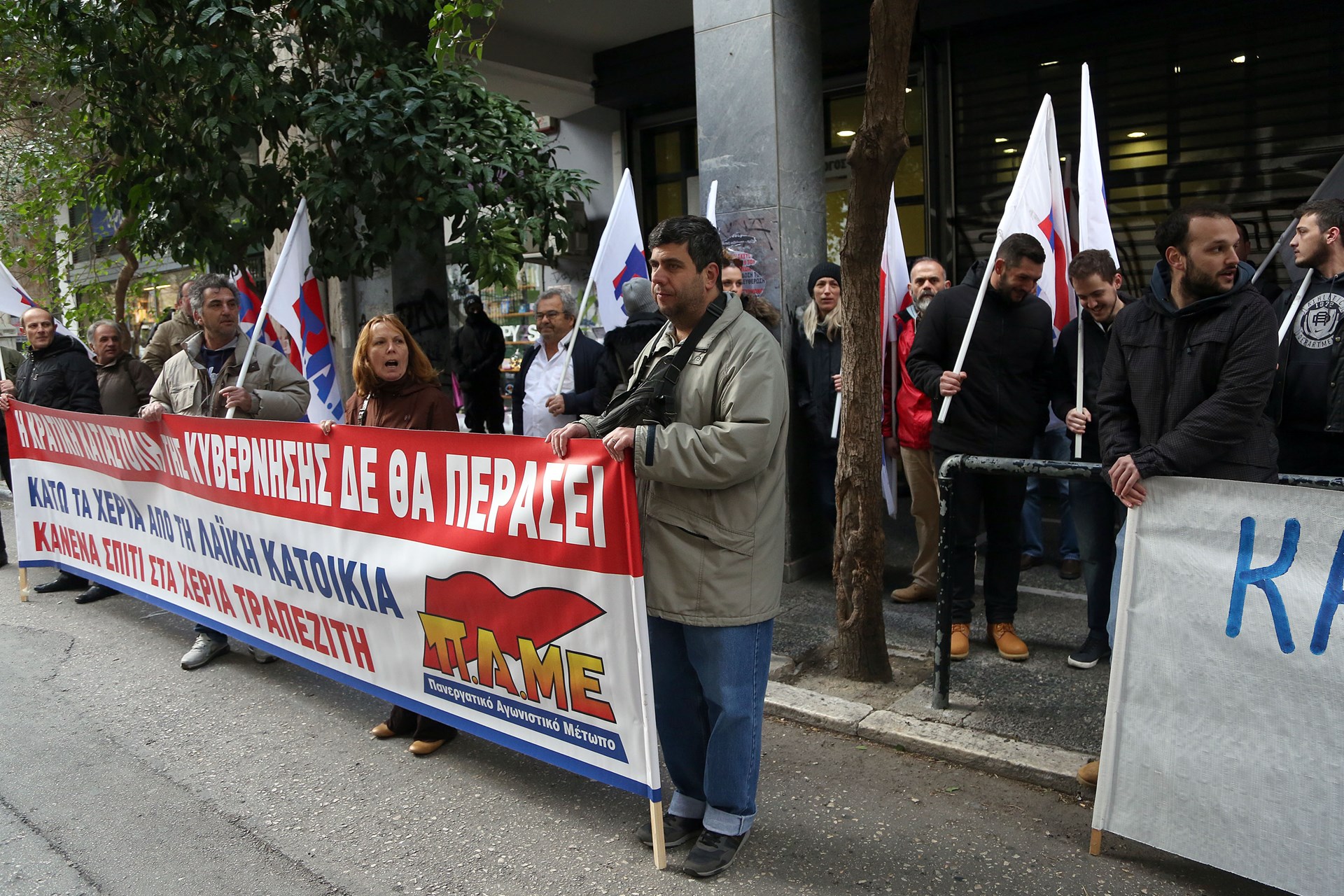 Παράσταση διαμαρτυρίας στον Σύλλογο Συμβολαιογράφων Αθήνας πραγματοποίησε το ΠΑΜΕ, καθώς όπως υποστηρίζει, η πολιτική που εκφράζει η πλειοψηφία της διοίκησης, μεταφράζεται σε στήριξη της κυβερνητικής πολιτικής και των τραπεζικών ομίλων, που έχουν στόχο να υφαρπάξουν τα σπίτια του λαού.
