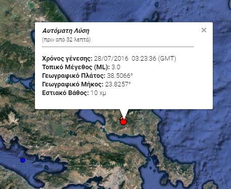 Βάσει της αυτόματης, προκαταρκτικής λύσης του Γεωδυναμικού Ινστιτούτου του Αστεροσκοπείου Αθηνών, η δόνηση ήταν τριών βαθμών της κλίμακας Ρίχτερ σε εστιακό βάθος δέκα χιλιομέτρων.