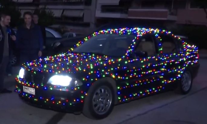 Τα Χριστούγεννα πλησιάζουν και ορισμένοι δεν μπορούν να κρύψουν τον ενθουσιασμό τους. Χαρακτηριστικό παράδειγμα αποτελεί ο 20χρονος Χρήστος από την Νέα Σμύρνη, ο οποίος στόλισε το αυτοκίνητό του με 1.780 πολύχρωμα χριστουγεννιάτικα λαμπιόνια.