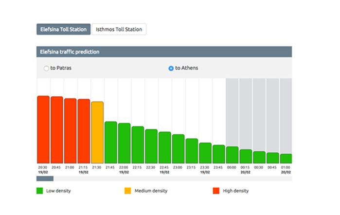2. Να βλέπουν την πρόβλεψη της κυκλοφορίας στους παραπάνω σταθμούς (Ελευσίνα, Ισθμός) και για τις δύο κατευθύνσεις για τις επόμενες τρεις μέρες (72 ώρες).