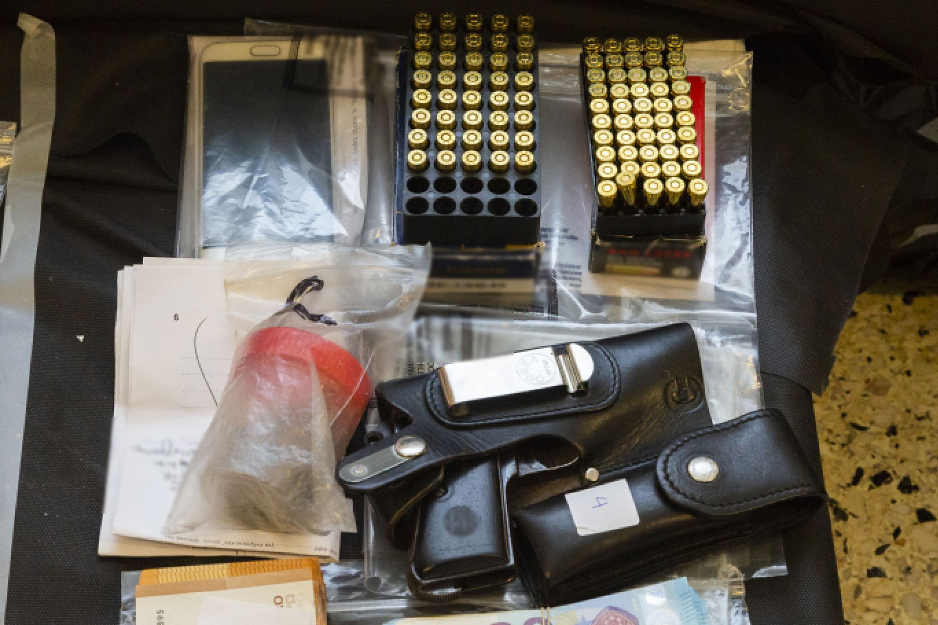 Από τις έρευνες που πραγματοποιήθηκαν σε οικίες και καταστήματα που χρησιμοποιούσαν οι εμπλεκόμενοι, βρέθηκαν και κατασχέθηκαν:
