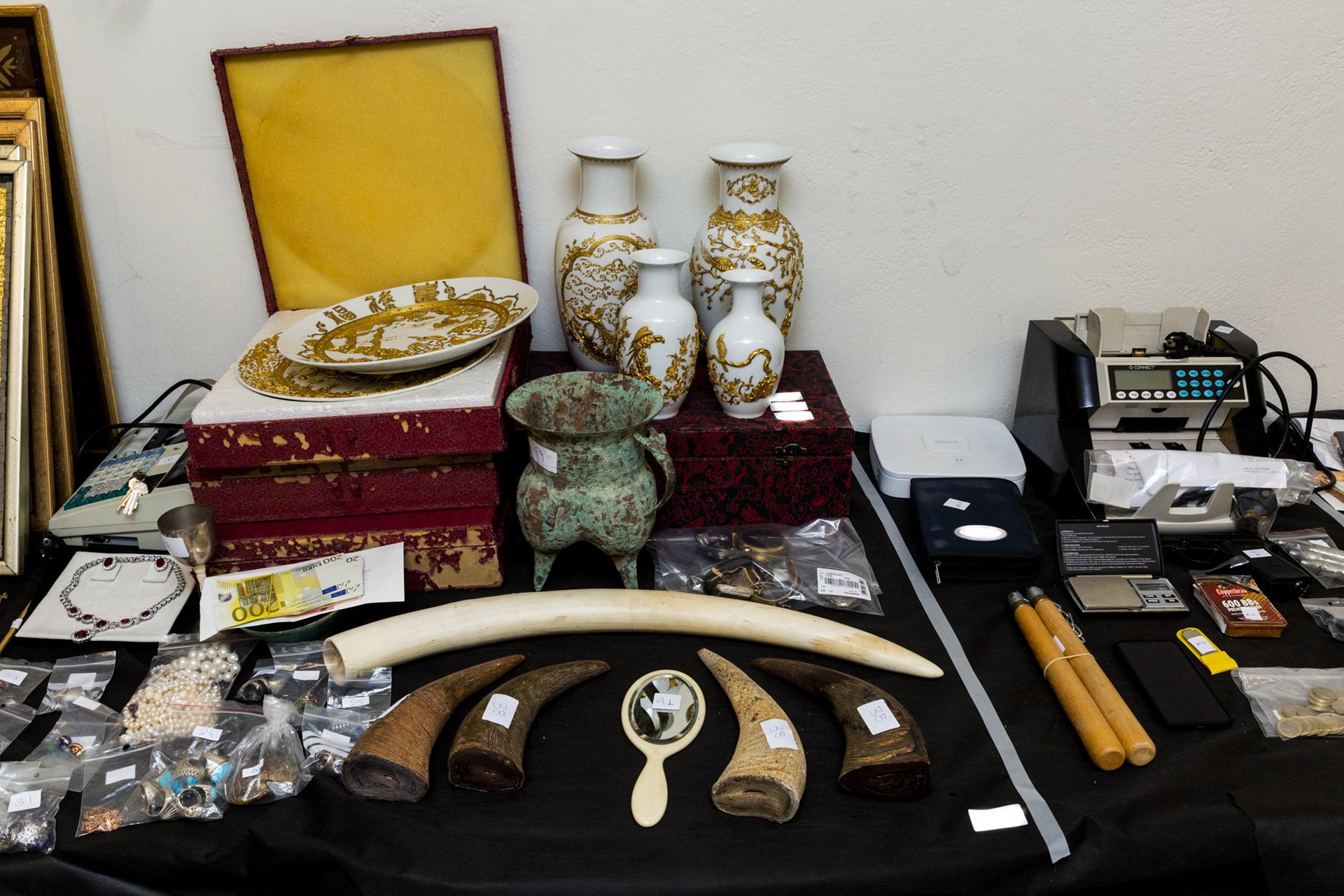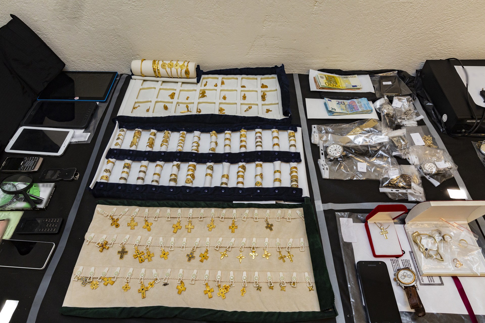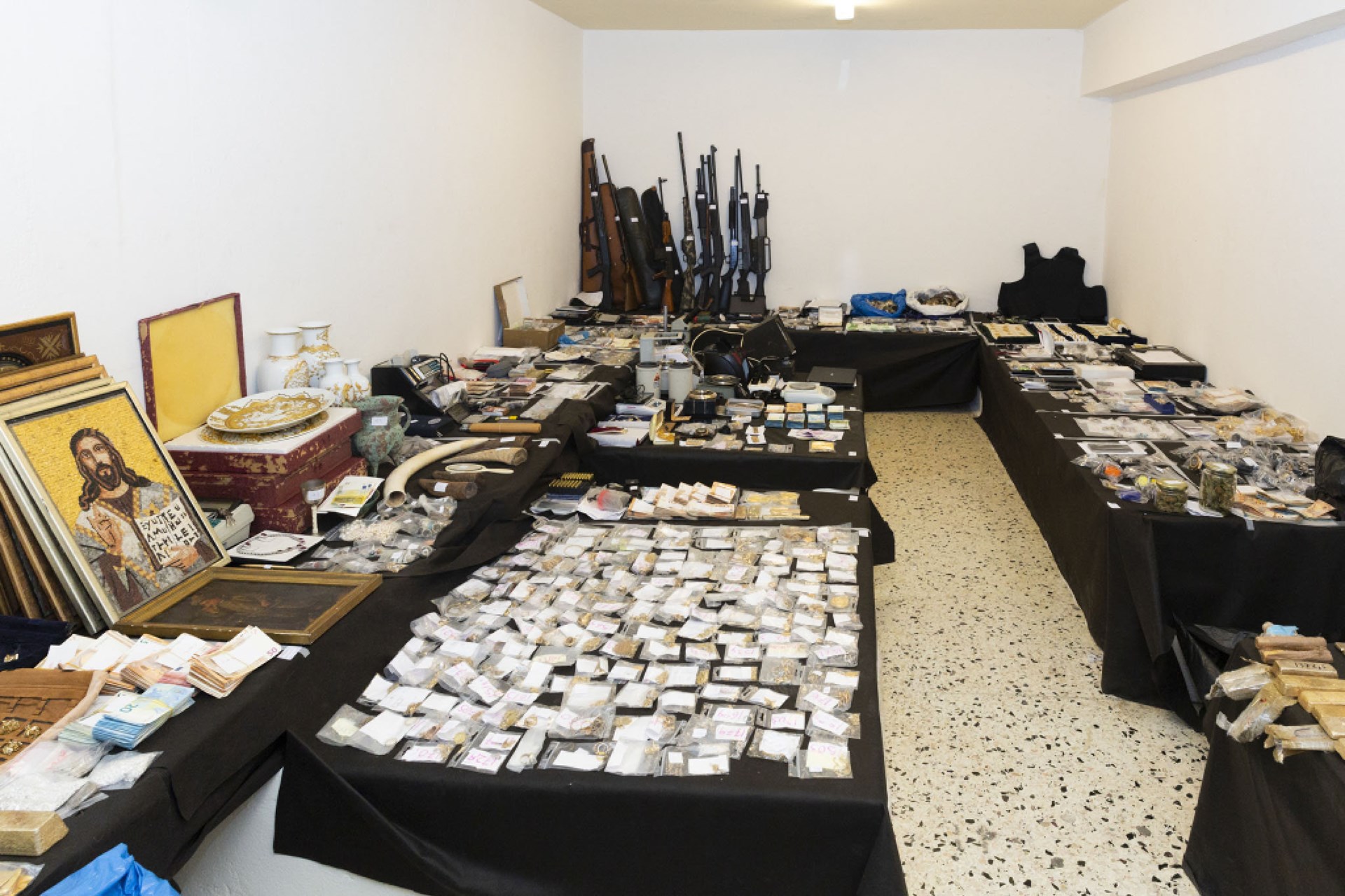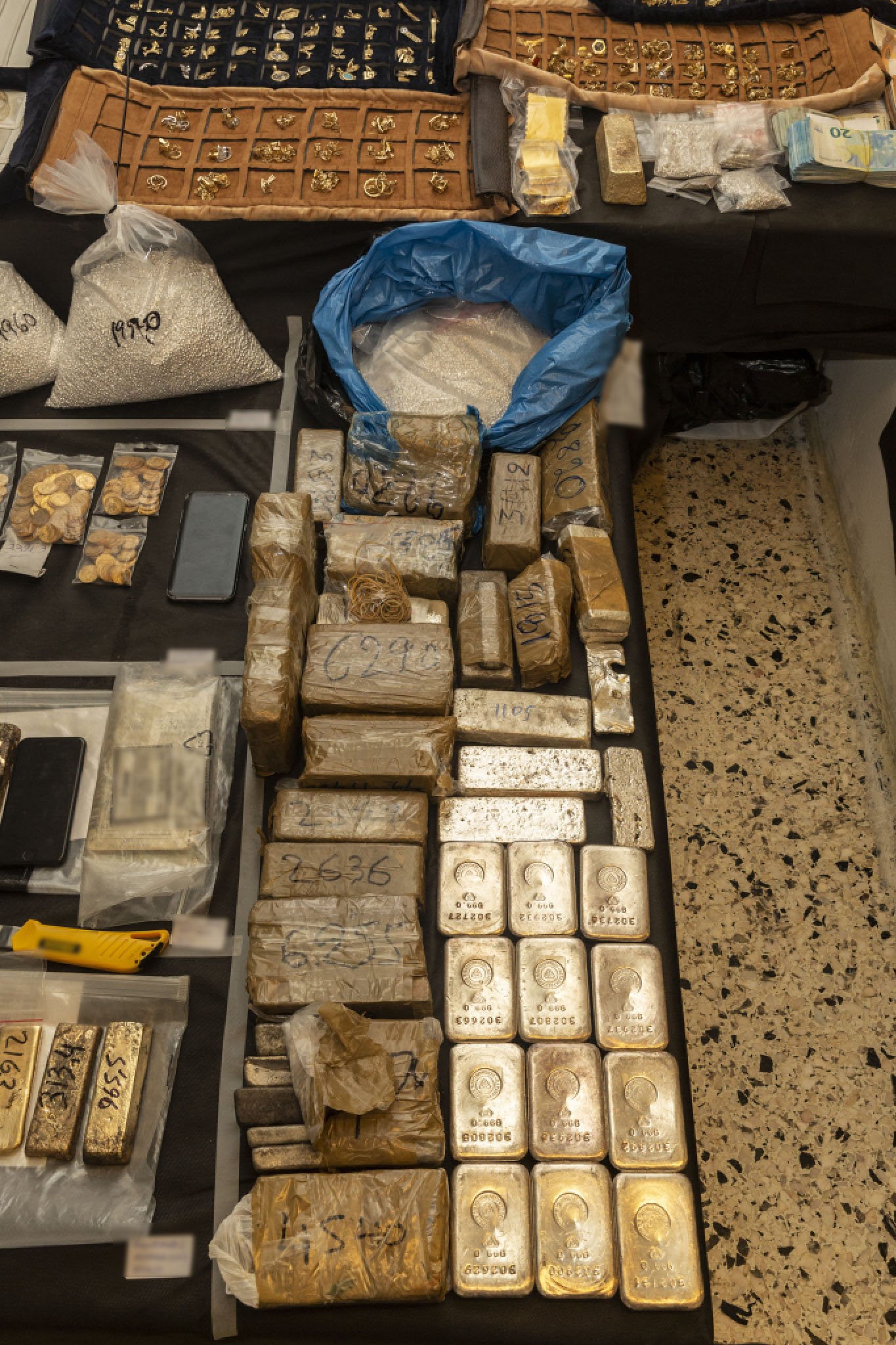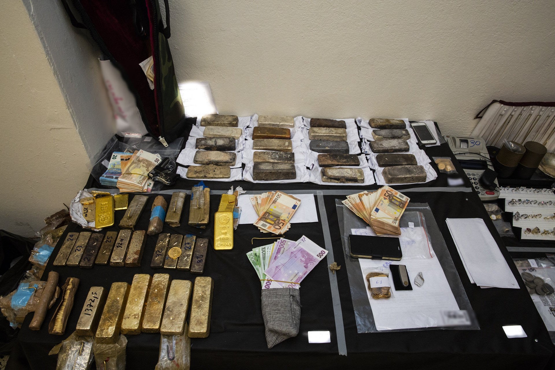 Σύμφωνα με τον ίδιο, μετά από δεκάδες έρευνες που πραγματοποιήθηκαν σε οικίες, καταστήματα και άτομα βρέθηκαν και κατασχέθηκαν μεγάλες ποσότητες χρυσού, ασημιού, κοσμημάτων, πολύτιμοι λίθοι, χρηματικά ποσά και πυροβόλα όπλα.