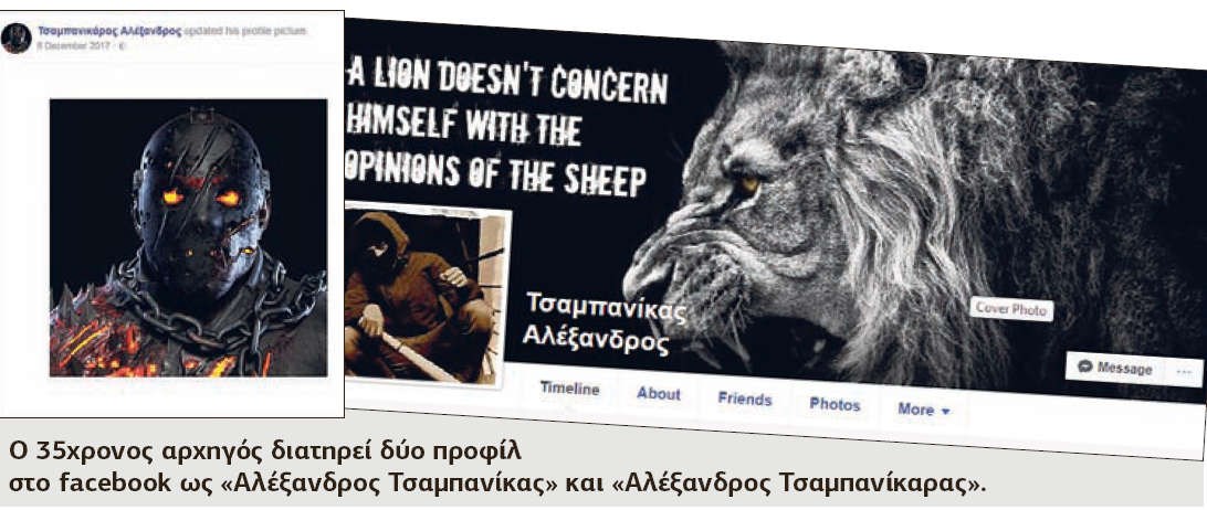 Μέσω ενός ψεύτικου προφίλ στο Facebook με στοιχεία «Αλέξανδρος Τσαμπανίκας» ο αρχηγός της ακροδεξιάς εξτρεμιστικής οργάνωσης «Combat 18» συντόνιζε τις εμπρηστικές επιθέσεις σε στέκια αντιεξουσιαστών στην Αθήνα και στη Θεσσαλονίκη.