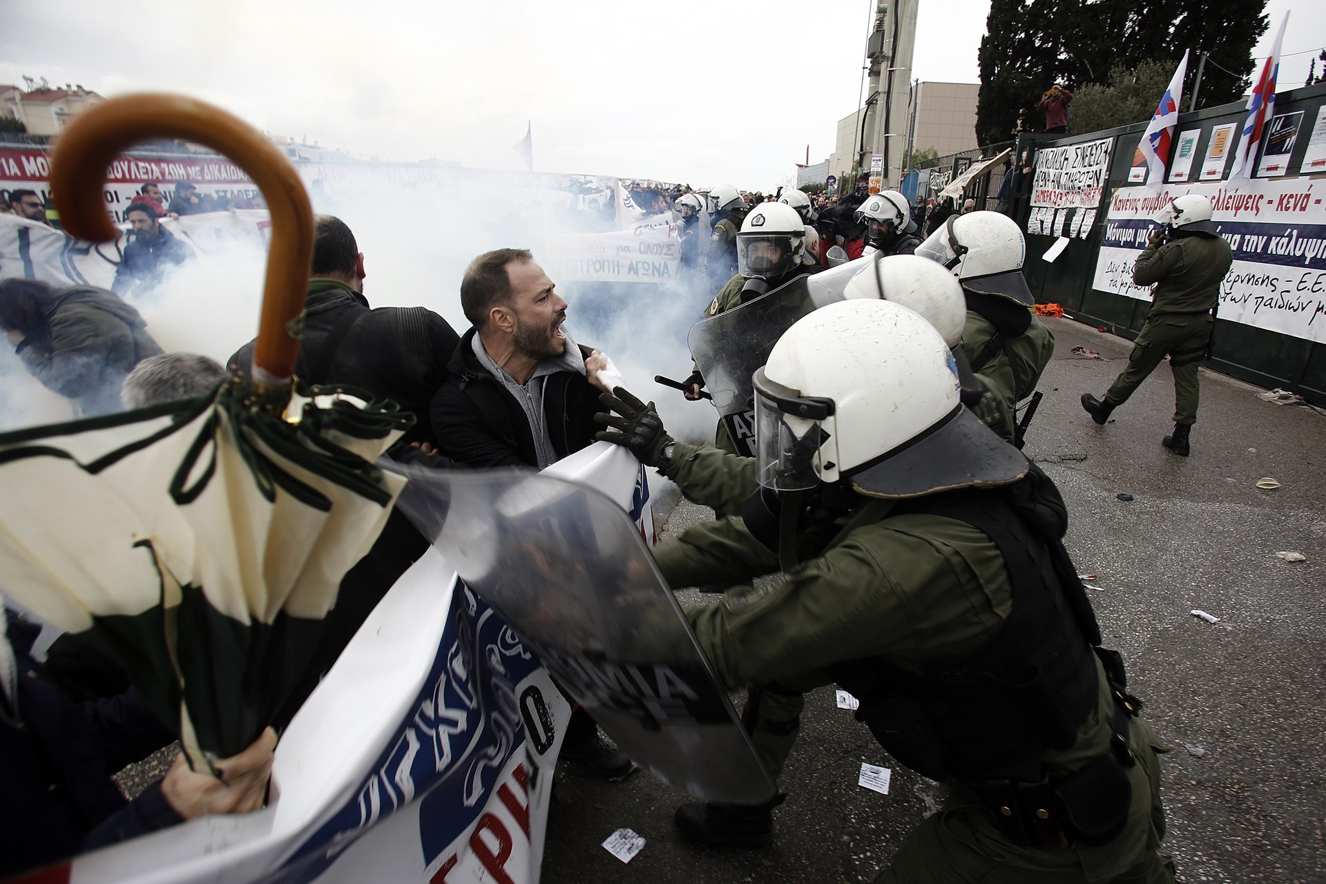Δυνάμεις της αστυνομίας προσπάθησαν να τους απωθήσουν, με αποτέλεσμα να προκληθεί ένταση και να χρησιμοποιηθούν δακρυγόνα. Κάποιοι από τους διαδηλωτές, ωστόσο, κατάφεραν να μπουν μέσα στον χώρο του υπουργείου, ζητώντας να συναντηθούν με την ηγεσία του υπουργείου.