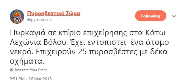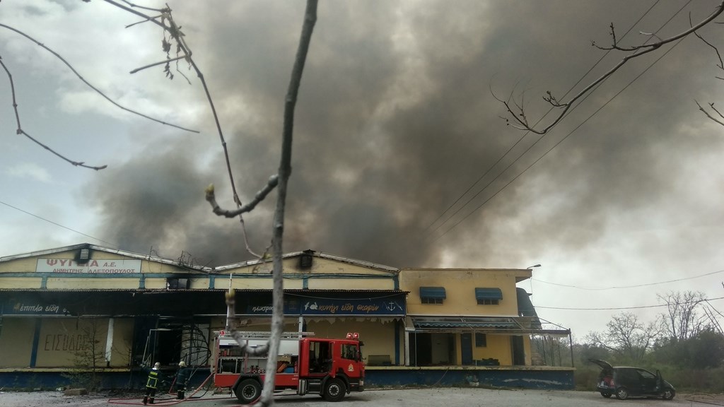 Νεκρός ανασύρθηκε ένας άνδρας που φέρεται να έκανε εργασίες, μαζί με άλλα δύο άτομα σύμφωνα με μάρτυρες, στις εγκαταστάσεις εργοστασίου με ψυγεία, μεταξύ Αγριάς και Λεχωνίων όταν ξέσπασε μεγάλη πυρκαγιά.