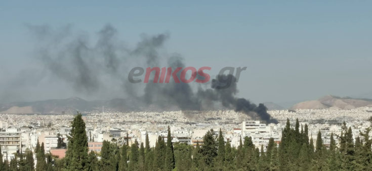 Μαύρος καπνός έχει σκεπάσει τον ουρανό στο κέντρο της Αθήνας, όπως φαίνεται στις φωτογραφίες που έστειλαν αναγνώστες του enikos.gr