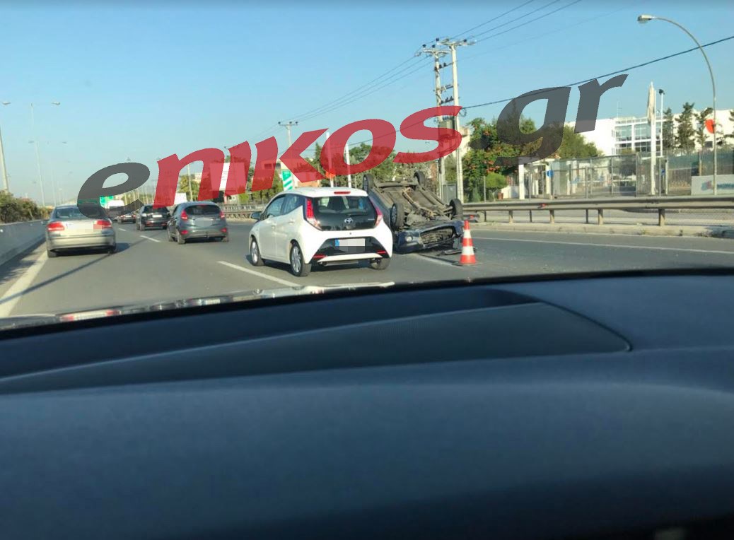 Όπως φαίνεται στις φωτογραφίες που έστειλε αναγνώστης του enikos.gr, το ένα από τα οχήματα έχει ανατραπεί στη δεξιά λωρίδα.