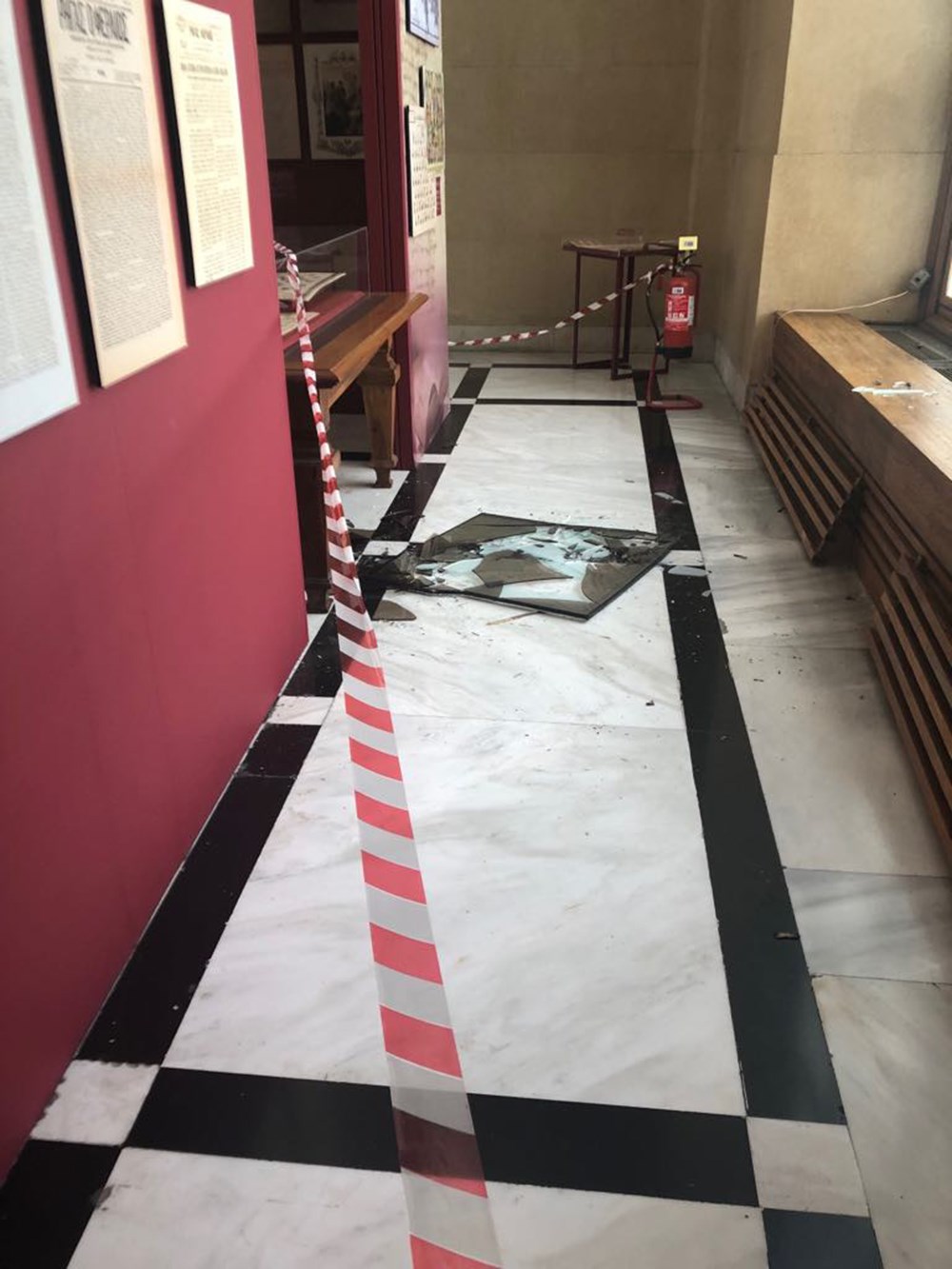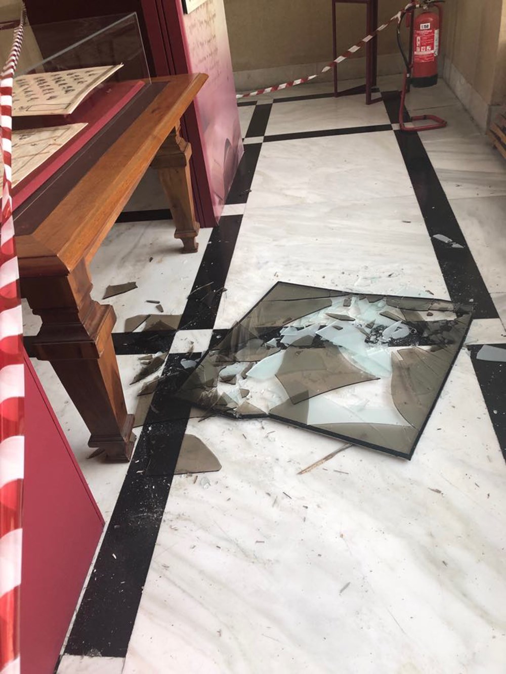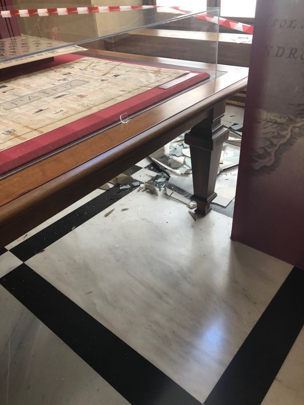 Λόγω της ισχυρής δόνησης έσπασε τζάμι στον χώρο του Περιστύλιου, όπου γίνεται η Έκθεση Ρήγας Φεραίος, και διαπιστώνονται ρωγμές σε σημεία των τοίχων.