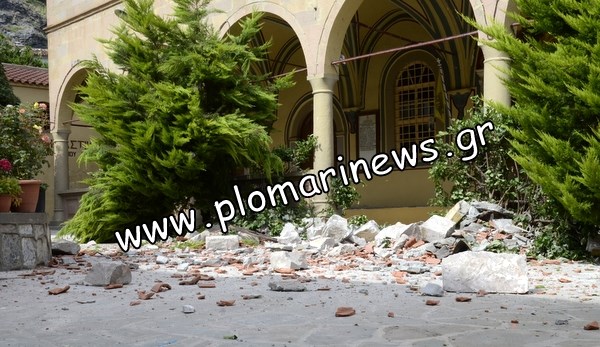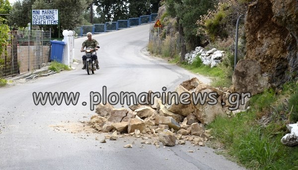Όπως φαίνεται και στις φωτογραφίες του plomarinews.gr, οι ζημιές σε παλιά σπίτια στο Πλωμάρι είναι μεγάλες. Υλικά από σκεπές έχουν πέσει στους δρόμους, ενώ ταυτόχρονα μεγάλοι βράχοι έχουν πέσει στο δρόμο Μελίντας-Πλωμαρίου.
