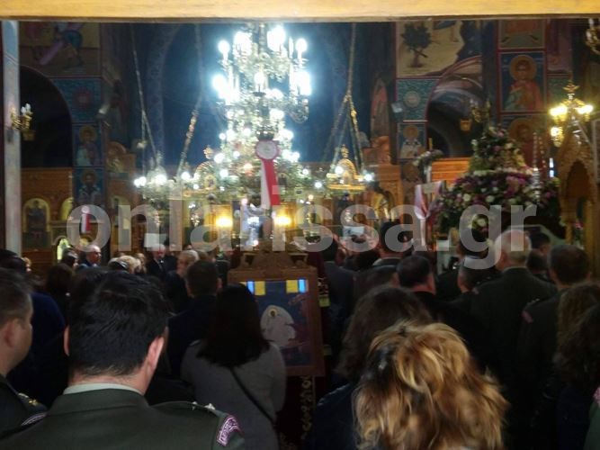 Η νεκρώσιμη ακολουθία του αδικοχαμένου κυβερνήτη του ελικοπτέρου Δημοσθένη Γούλα πραγματοποιήθηκε στον ιερό ναό του Αναλήψεως του Σωτήρος στην Λάρισα, παρουσία του υπουργού Εθνικής Άμυνας, Πάνου Καμμένου.Το κλίμα ήταν ιδιαίτερα βαρύ, με συγγενείς, φίλους και συναδέλφους του άτυχου ταγματάρχη να δίνουν το παρών.