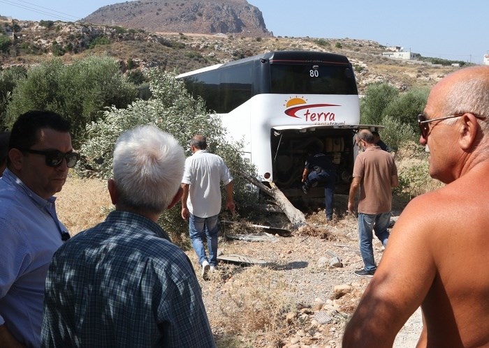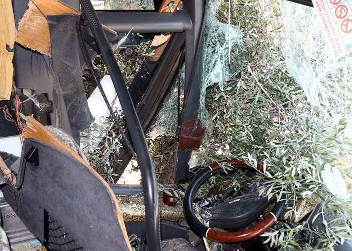 Το λεωφορείο εξετράπη από την πορεία του και έπεσε από τη γέφυρα, καταλήγοντας, όπως φαίνεται στις νέες φωτογραφίες από τον τόπο του δυστυχήματος το ekriti.gr, πάνω σε μία ελιά.