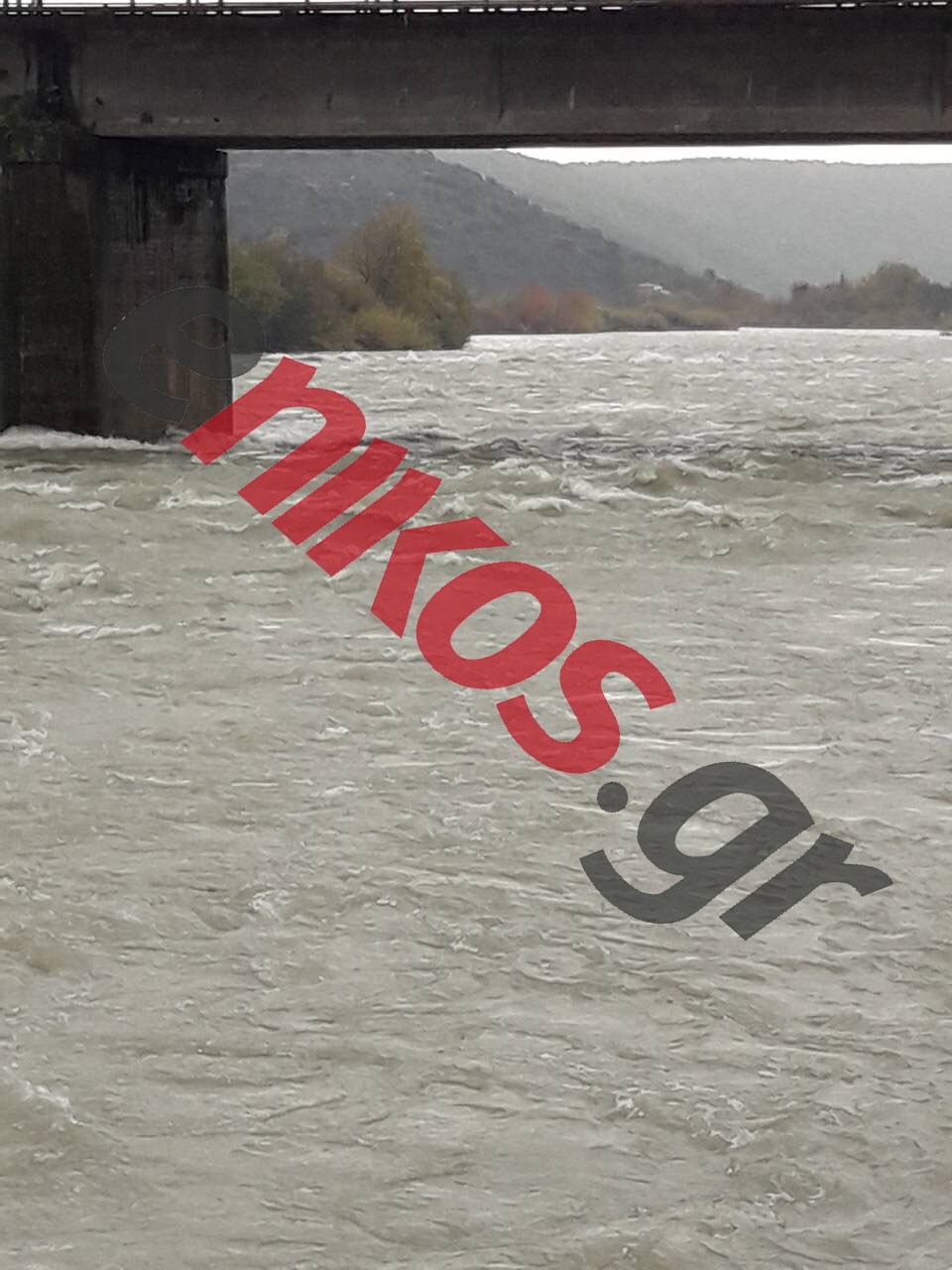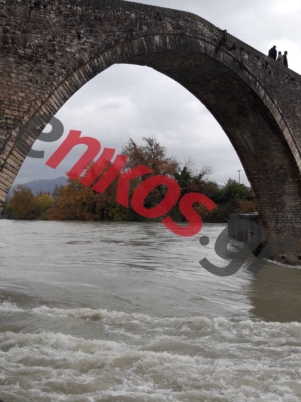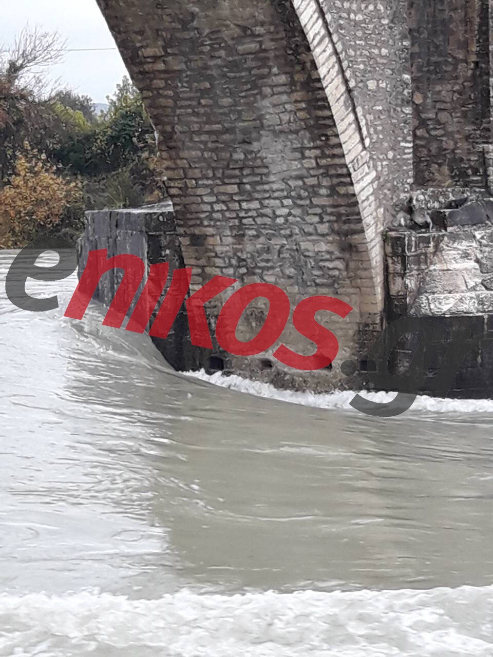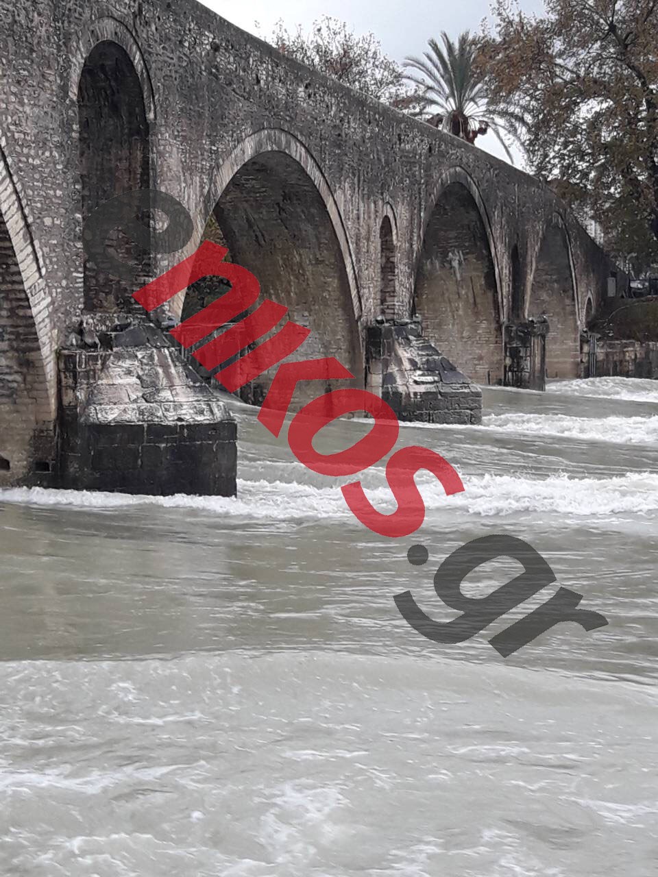 Ο Άραχθος φούσκωσε από την σφοδρή βροχόπτωση με αποτέλεσμα το νερό να φτάσει σχεδόν στις καμάρες υποστήριξης του γεφυριού της Άρτας.