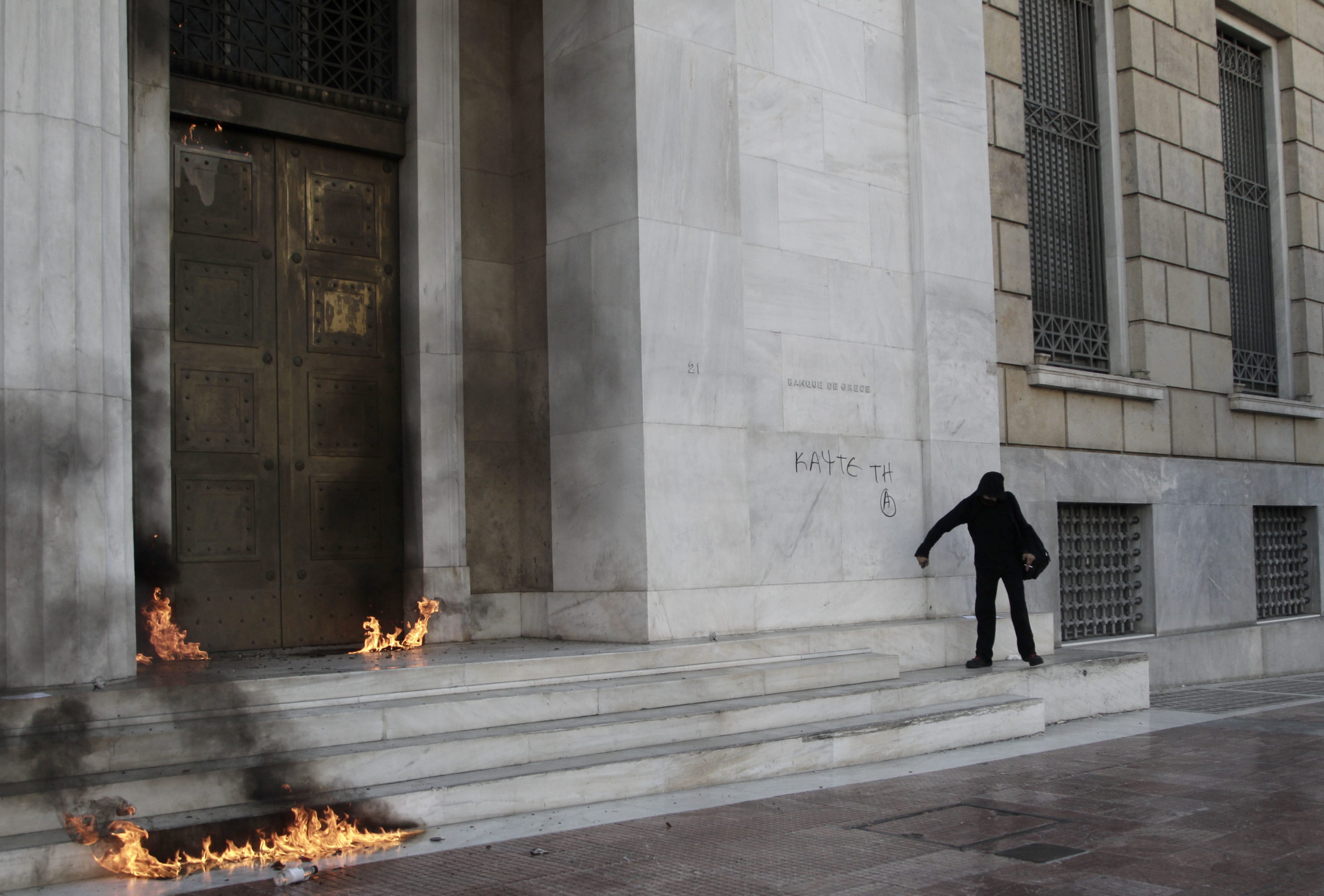 Μολότοφ και στην Τράπεζα της Ελλάδος – ΒΙΝΤΕΟ