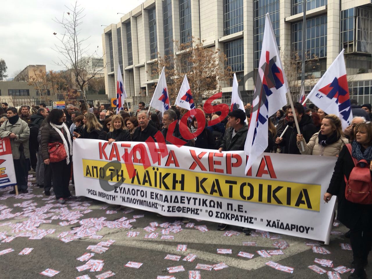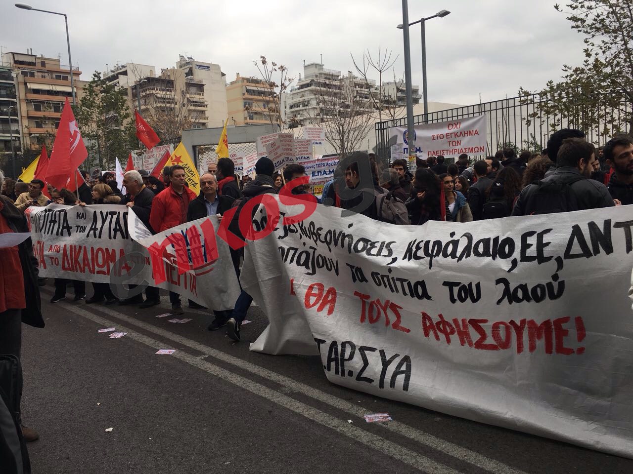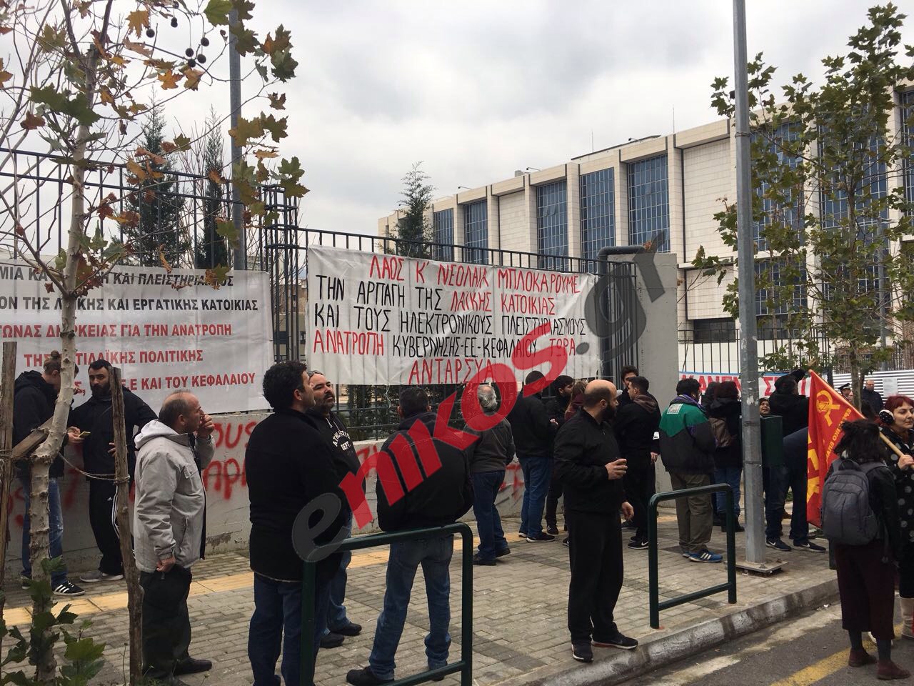 Στο σημείο βρίσκονται περισσότερα από 200 άτομα, αλλά και ισχυρότατη αστυνομική δύναμη με την οδό Λουκάρεως να είναι κλειστή.