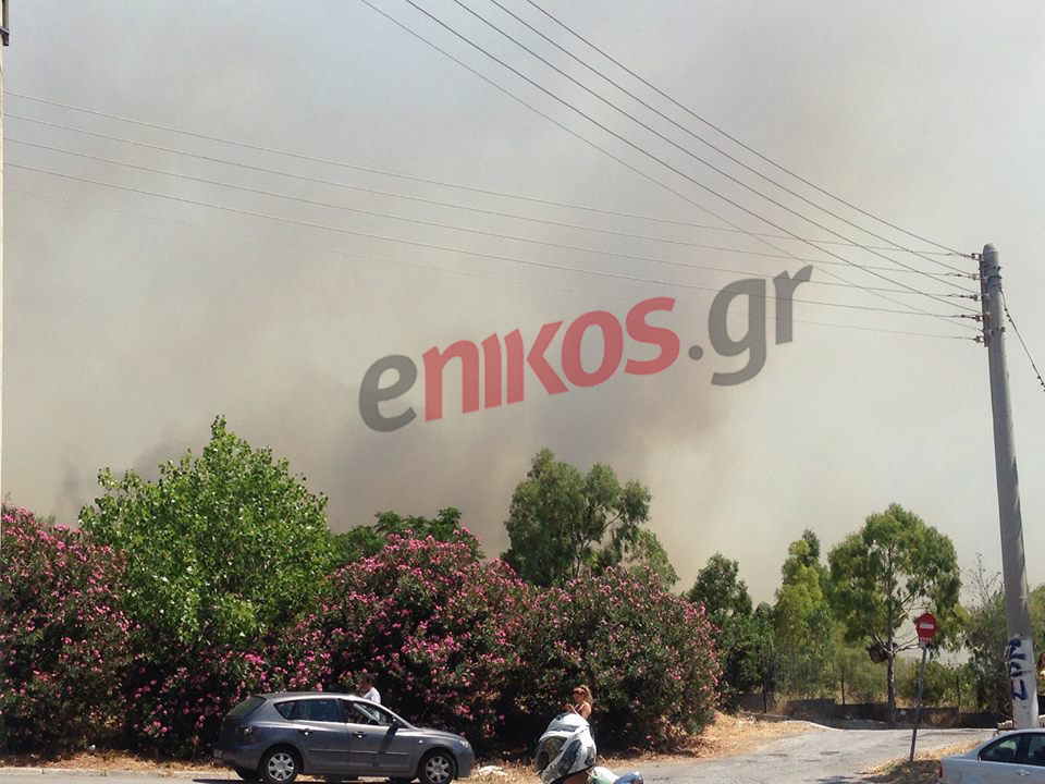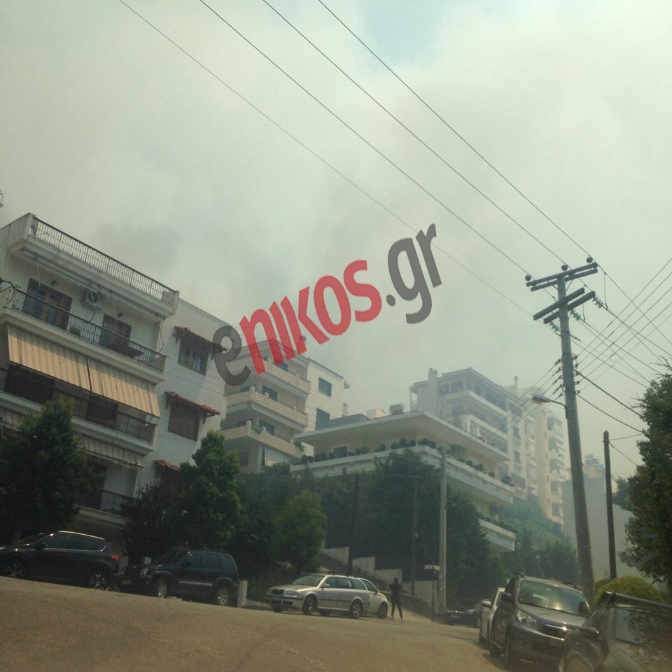 Κοντά σε σπίτια έχουν φτάσει οι φλόγες στην Ηλιούπολη, όπως φαίνεται σε φωτογραφίες που έστειλε αναγνώστης του enikos.gr.