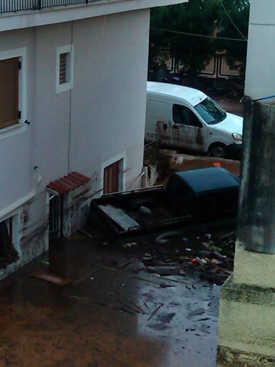 Ενδεικτικές του μεγέθους της καταστροφής από τη σφοδρή βροχόπτωση στην Καλαμάτα είναι οι φωτογραφίες που ανεβάζουν στα social media κάτοικοι της περιοχής.
