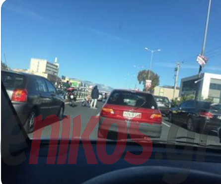 Ο αναβάτης της μοτοσυκλέτας βρίσκεται αυτή την ώρα αιμόφυρτος στην άσφαλτο, ενώ ένας ηλικιωμένος περιμένει την βοήθεια των τραυματιοφορέων.