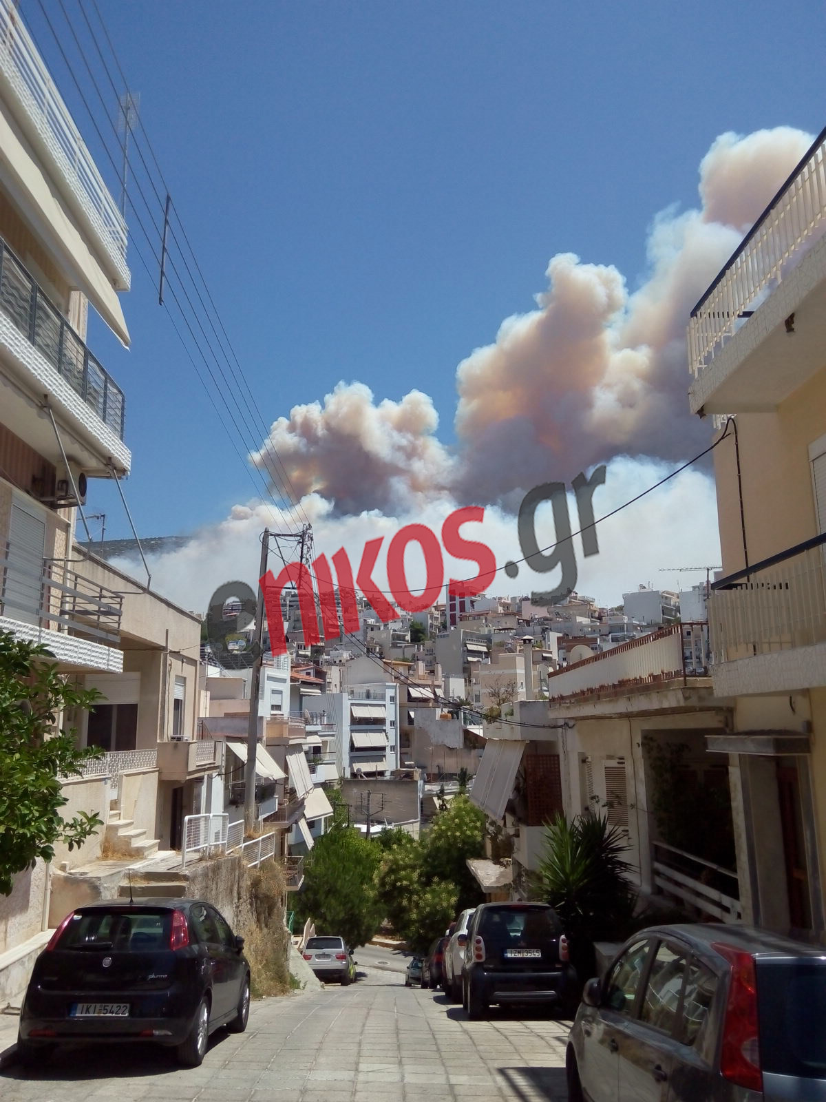 Έντρομοι είναι οι κάτοικοι του Υμηττού καθώς η φωτιά έχει πλησιάσει τα σπίτια και οι πυροσβέστες δίνουν μάχη με τις φλόγες.