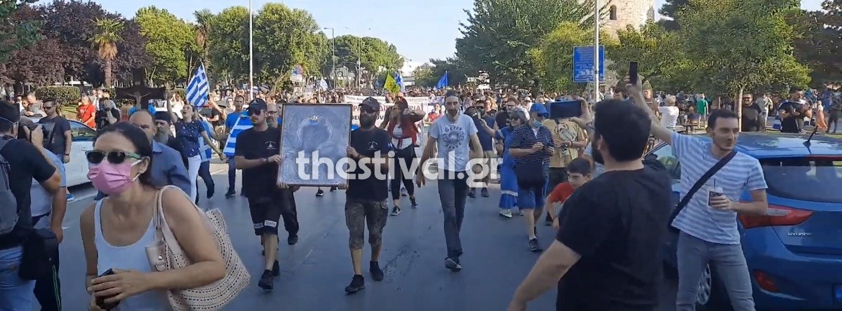 Ανάλογη, όμως, συγκέντρωση έγινε και στη Θεσσαλονίκη στο Πάρκο του Λευκού Πύργου. Οι συγκεντρωμένοι φώναξαν συνθήματα κατά του υποχρεωτικού εμβολιασμού, αλλά και των περιοριστικών μέτρων.
