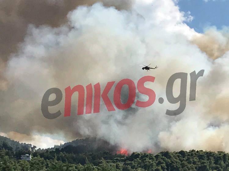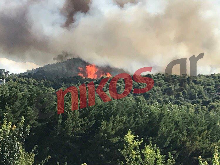 Στις φωτογραφίες που μας έστειλε αναγνώστης του enikos.gr, βλέπουμε τη φωτιά να καίει πευκοδάσος και τα πυροσβεστικά ελικόπτερα να δίνουν μάχες με τις φλόγες.