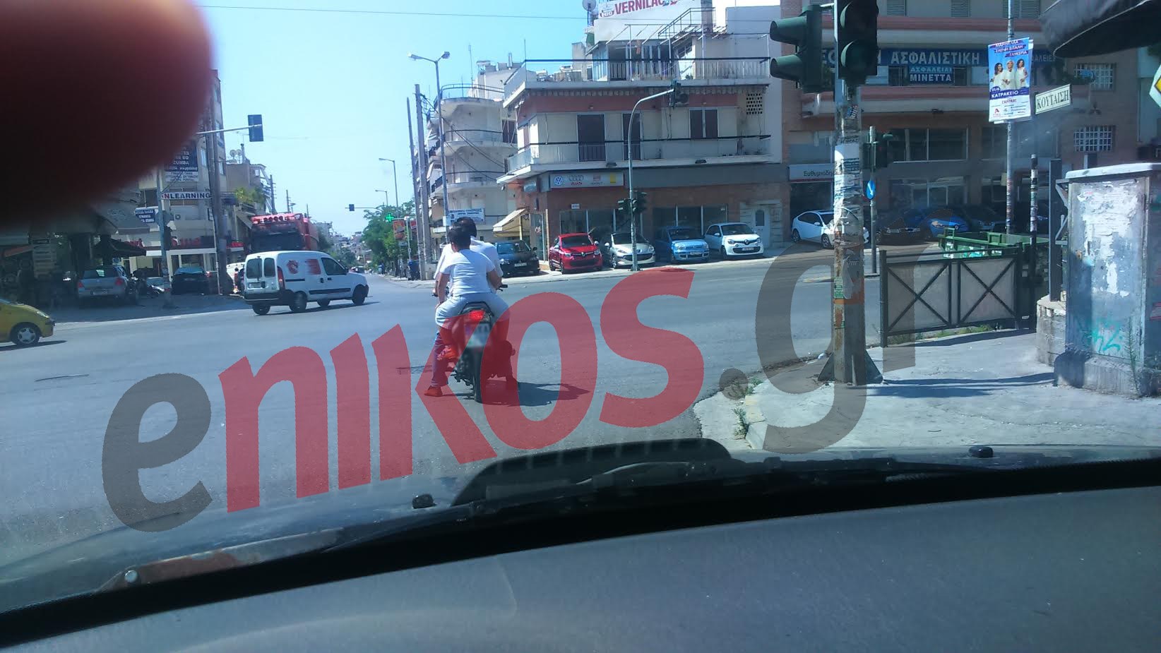 Τρόμο και ανησυχία προκαλεί η ασυνειδησία των οδηγών δικύκλων στους ελληνικούς δρόμους, οι οποίοι θέτουν συχνά σε κίνδυνο όχι μόνο τον εαυτό τους, αλλά κυρίως μικρά παιδιά.Σε νέα φωτογραφία που μας έστειλε αναγνώστης του enikos.gr, φαίνεται ένας οδηγός δικύκλου ο οποίος δεν φορά κράνος, να έχει στο πίσω μέρος ένα παιδί, το οποίο επίσης δεν φορά κράνος, με αποτέλεσμα να θέτει σε κίνδυνο τη ζωή και των δυο τους.