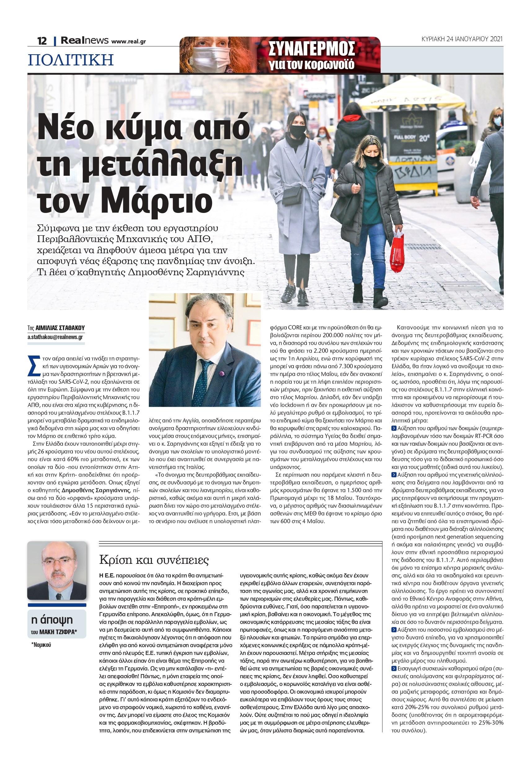 Στον αέρα απειλεί να τινάξει τη στρατηγική των υγειονομικών Αρχών για το άνοιγμα των δραστηριοτήτων η βρετανική μετάλλαξη του SARS-CoV-2, που εξαπλώνεται σε όλη την Ευρώπη. Σύμφωνα με την έκθεση του εργαστηρίου Περιβαλλοντικής Μηχανικής του ΑΠΘ, που είναι στα χέρια της κυβέρνησης, η διασπορά του μεταλλαγμένου στελέχους B.1.1.7 μπορεί να μεταβάλει δραματικά τα επιδημιολογικά δεδομένα στη χώρα μας και να οδηγήσει τον Μάρτιο σε επιθετικό τρίτο κύμα. Στην Ελλάδα έχουν ταυτοποιηθεί μέχρι στιγμής 26 κρούσματα του νέου αυτού στελέχους, που είναι κατά 60% πιο μεταδοτικό, εκ των οποίων τα δύο -που εντοπίστηκαν στην Αττική και στην Κρήτη- αποδείχθηκε ότι προέρχονταν από εγχώρια μετάδοση. Οπως εξηγεί ο καθηγητής Δημοσθένης Σαρηγιάννης, πίσω από τα δύο «ορφανά» κρούσματα υπάρχουν τουλάχιστον άλλα 15 περιστατικά εγχώριας μετάδοσης. «Εάν το μεταλλαγμένο στέλεχος είναι τόσο μεταδοτικό όσο δείχνουν οι μελέτες από την Αγγλία, οποιαδήποτε περαιτέρω ανοίγματα δραστηριοτήτων ελλοχεύουν κινδύνους μέσα στους επόμενους μήνες», επισημαίνει ο κ. Σαρηγιάννης και εξηγεί τι έδειξε για το άνοιγμα των σχολείων το υπολογιστικό μοντέλο που έχει αναπτυχθεί σε συνεργασία με πανεπιστήμια της Ιταλίας. «Το άνοιγμα της δευτεροβάθμιας εκπαίδευσης, σε συνδυασμό με το άνοιγμα των δημοτικών σχολείων και του λιανεμπορίου, είναι καθοριστικό, καθώς ακόμα και αυτή η μικρή χαλάρωση δίνει τον χώρο στο μεταλλαγμένο στέλεχος να αναπτυχθεί πιο γρήγορα. Ετσι, με βάση το σενάριο που ανέλυσε η υπολογιστική πλατφόρμα CORE και με την προϋπόθεση ότι θα εμβολιάζονται περίπου 200.000 πολίτες τον μήνα, η διασπορά του συνόλου των στελεχών του ιού θα φτάσει τα 2.200 κρούσματα ημερησίως την 1η Απριλίου, ενώ στην κορύφωσή της μπορεί να φτάσει πάνω από 7.300 κρούσματα την ημέρα στο τέλος Μαΐου, εάν δεν ανακοπεί η πορεία του με τη λήψη επιπλέον περιοριστικών μέτρων, πριν ξεκινήσει η εκθετική αύξηση στο τέλος Μαρτίου. Δηλαδή, εάν δεν υπάρξει νέο lockdown ή αν δεν προχωρήσουν με πολύ μεγαλύτερο ρυθμό οι εμβολιασμοί, το τρίτο επιδημικό κύμα θα ξεκινήσει τον Μάρτιο και θα κορυφωθεί στις αρχές του καλοκαιριού. Παράλληλα, το σύστημα Υγείας θα δεχθεί σημαντική επιβάρυνση από τα μέσα Μαρτίου, λόγω του συνδυασμού της αύξησης των κρουσμάτων του μεταλλαγμένου στελέχους και του υπάρχοντος. Σε περίπτωση που παρέμενε κλειστή η δευτεροβάθμια εκπαίδευση, ο ημερήσιος αριθμός κρουσμάτων θα έφτανε τα 1.500 από την Πρωτομαγιά μέχρι τις 18 Μαΐου. Ταυτόχρονα, ο μέγιστος αριθμός των διασωληνωμένων ασθενών στις ΜΕΘ θα έφτανε το κρίσιμο όριο των 600 στις 4 Μαΐου.