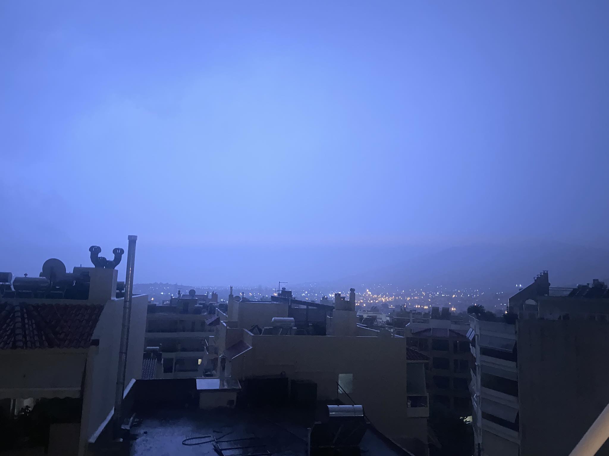 Παράλληλα, κεραυνοί ακούγονται σε όλο το λεκανοπέδιο κάνοντας στην κυριολεξία τη νύχτα, μέρα.
