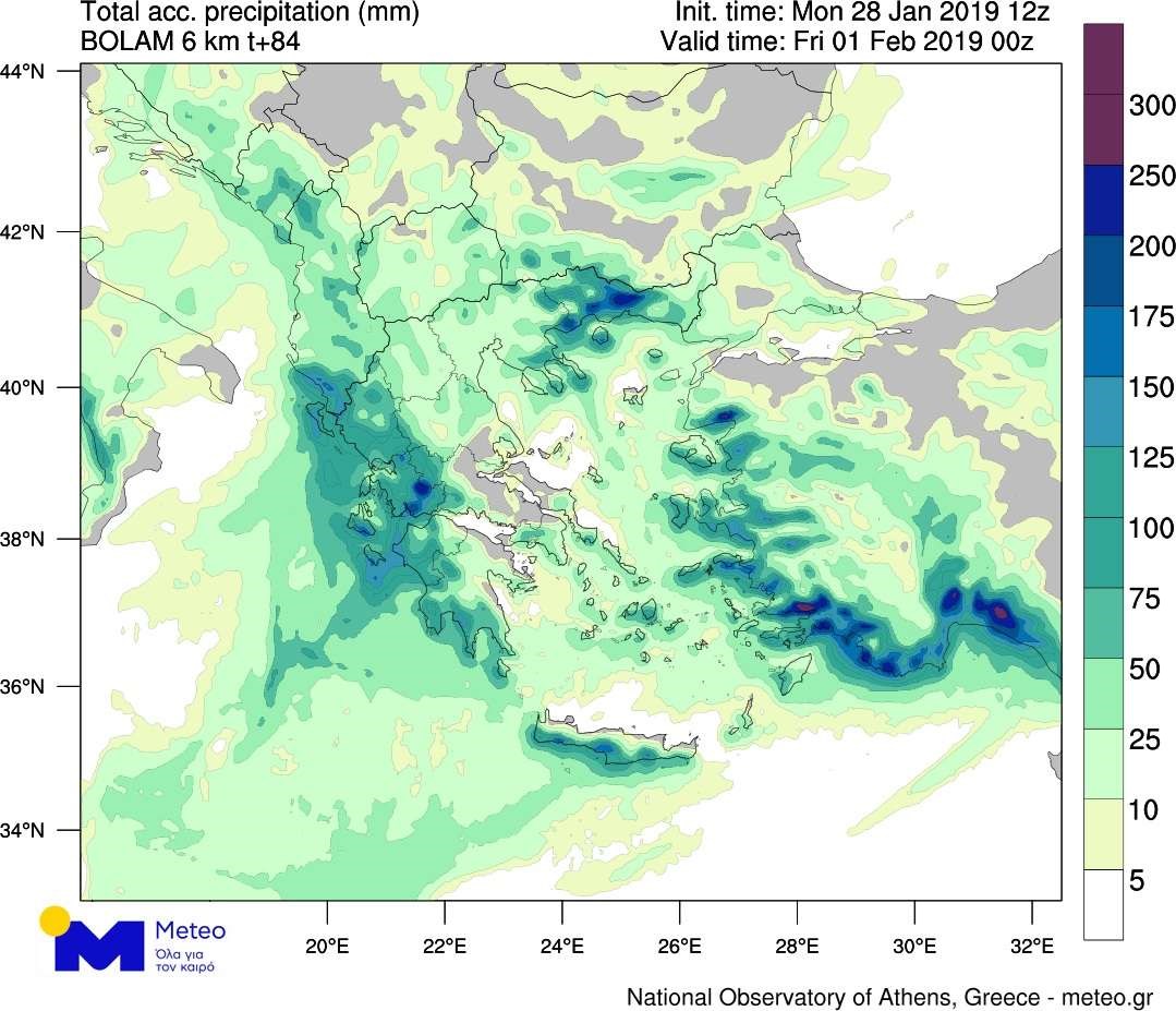 Η μετεωρολογική υπηρεσία meteo του Εθνικού Αστεροσκοπείου Αθηνών (ΕΑΑ) τονίζει ότι αν και η ένταση των φαινομένων κατά κανόνα δεν θα είναι ιδιαίτερα μεγάλη, θα πέσουν αθροιστικά σημαντικές ποσότητες βροχής κυρίως στη δυτική και στη βορειοανατολική χώρα, όπου -σε συνδυασμό με το κορεσμένο σε νερό έδαφος- ενδέχεται να δημιουργήσουν πλημμυρικά επεισόδια.