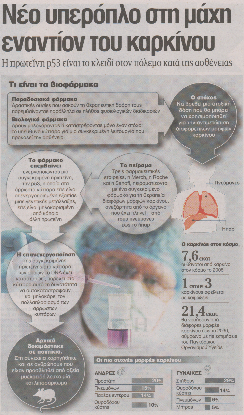 Η γενετική αλλοίωση που ελπιζουν να αντιμετωπίσουν οι επιστήμονες τους απασχολεί εδώ και δεκαετίες. Τα υγιή κύτταρα διαθέτουν ένα φυσικό μηχανισμό που τα εξαναγκάζει να αυτοκαταστραφούν σε περίπτωση που το DNA τους έχει καταστραφεί. Μία συγκεκριμένη πρωτεϊνη, η p53, την οποία ερευνητές της εταιρείας Merck αποκαλούν “άγγελο του θανάτου του κυττάρου” είναι υπεύθυνη για την ενεργοποίηση του συγκεκριμένου μηχανισμού. Αλλά τα καρκινικά κύτταρα καταφέρνουν να την απενεργοποιήσουν είτε άμεσα μέσω μιας μετάλλαξης είτε έμμεσα μέσω της ένωσής της με μία άλλη πρωτεϊνη που μπλοκάρει τη λειτουργία της.