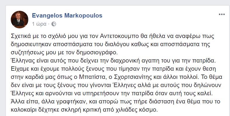 Αναλυτικά η ανάρτηση του Ευάγγελου Μαρκόπουλου: