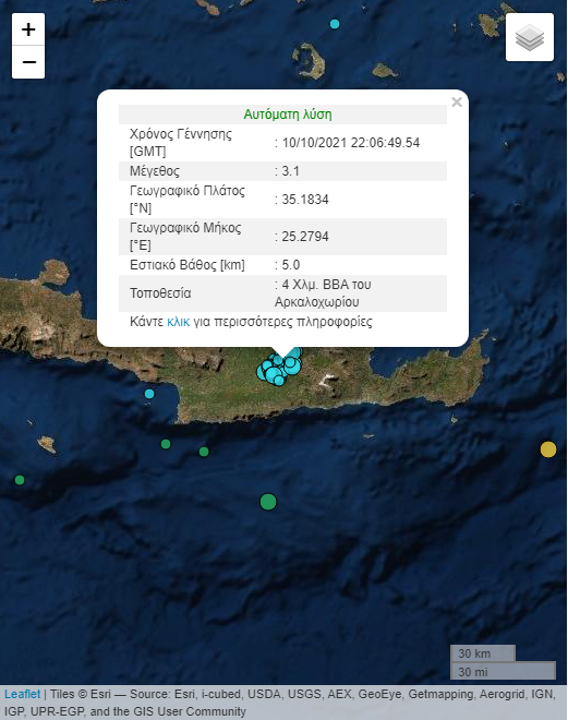 Πριν από λίγο σημειώθηκε σεισμός 3,1 Ρίχτερ με επίκεντρο τον θαλάσσιο χώρο 4 χιλιόμετρα βορειοανατολικά του Αρκαλοχωρίου.