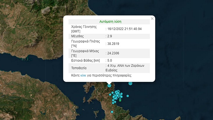 Νέος σεισμός 2,9 ρίχτερ στην Νότια Εύβοια