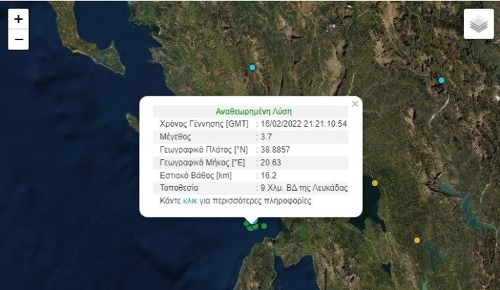 Σεισμός μεγέθους 3,7 βαθμών της κλίμακας Ρίχτερ σημειώθηκε το βράδυ της Τετάρτης, στις 23.21, 9 χιλιόμετρα βορειοδυτικά της Λευκάδας, γνωστοποίησε το Γεωδυναμικό Ινστιτούτο του Εθνικού Αστεροσκοπείου Αθηνών.