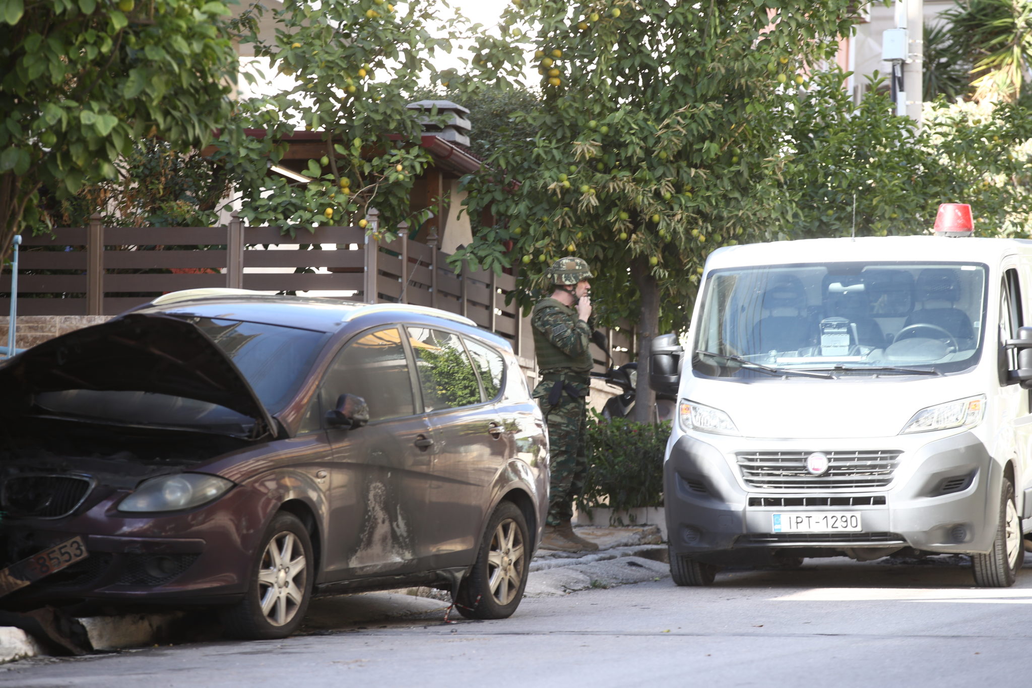 Το όχημα του υπαλλήλου, το οποίο ήταν σταθμευμένο μπροστά από το σπίτι του, τυλίχθηκε στις φλόγες, ενώ λίγες ώρες αργότερα εντοπίστηκε χειροβομβίδα σε οικόπεδο απέναντι από την οικία του.