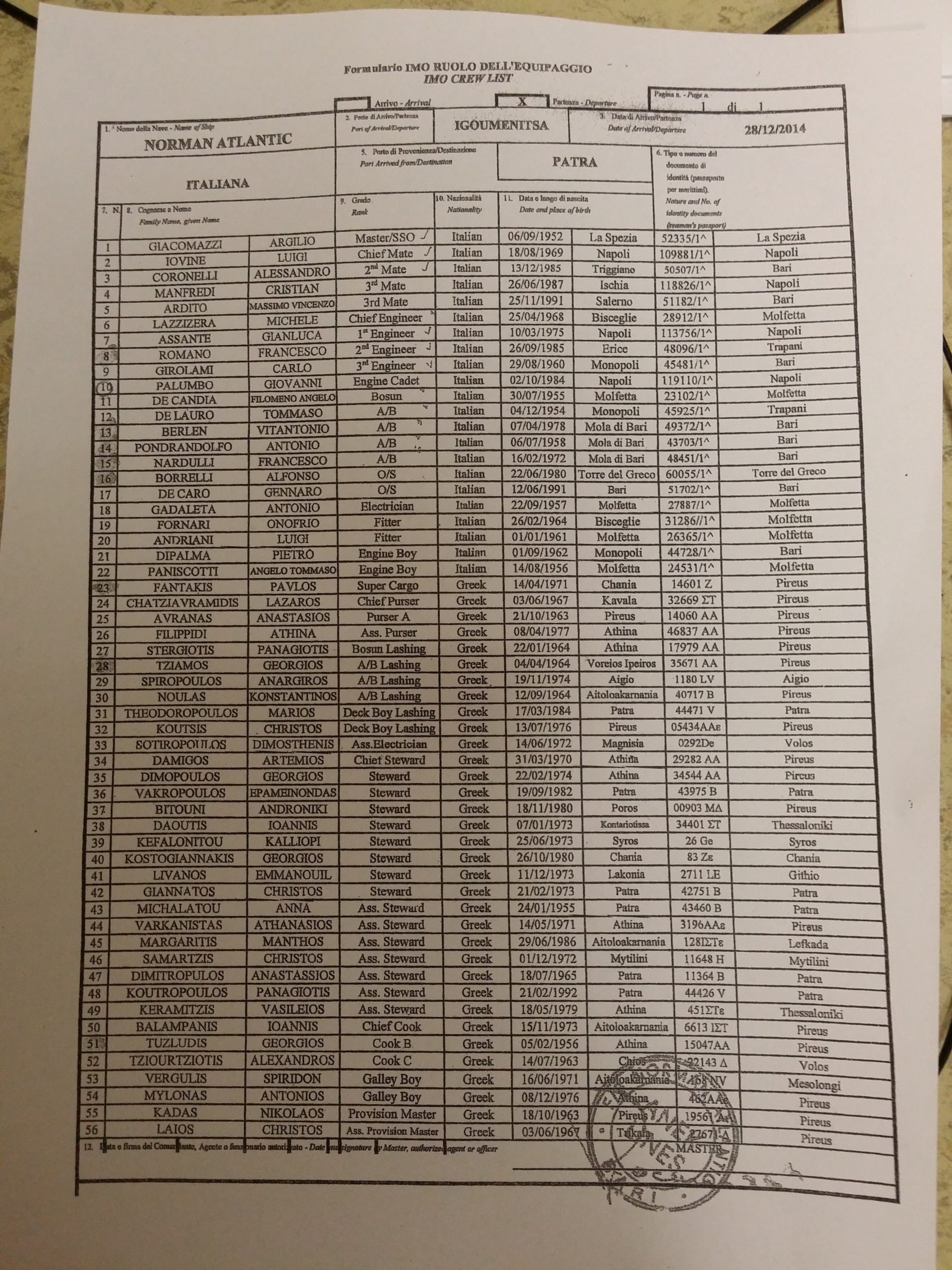 Norman Atlantic – Η λίστα με τα μέλη του πληρώματος – ΦΩΤΟ Enikos Newsroom 13:25, Δευτέρα 29 Δεκεμβρίου 2014 κοινωνία Στη δημοσιότητα δόθηκε η λίστα με τα ονόματα των μελών του πληρώματος του Norman Atlantic… NORMAN ATLANTIC ΕΛΛΗΝΕΣ ΛΙΣΤΑ ΝΟΡΜΑΝ ΑΤΛΑΝΤΙΚ ΟΝΟΜΑΤΑ ΠΛΗΡΩΜΑ ΠΛΟΙΟ Μοιράσου το: σχολίασε κι εσύ (0 σχόλια) Ακολουθήστε το enikos.gr στο Google News και μάθετε πρώτοι όλες τις ειδήσεις Δείτε όλες τις τελευταίες ειδήσεις από την Ελλάδα και τον Κόσμο στο enikos.gr Ειδήσεις Ροή Ειδήσεων 2 ώρες πριν Ανυποχώρητοι οι αγρότες: Δεν πάνε στο Μαξίμου, κλιμακώνουν τις κινητοποιήσεις – Ποια είναι τα αιτήματά τους 1 ώρα πριν ΟΠΕΚΕΠΕ-Κρήτη: Πώς δρούσε το κύκλωμα με τις παράνομες επιδοτήσεις – Τα ΚΥΔ, οι ψευδείς αιτήσεις και τα… «βράχια της Νορμανδίας» 1 ώρα πριν Διατλαντικό ρήγμα: Οι σχέσεις ΗΠΑ – Ευρώπης επιδεινώνονται λόγω του νέου δόγματος Τραμπ και της πίεσης που ασκεί στην Ουκρανία 2 ώρες πριν Διπλό φονικό στη Φοινικούντα: Δύο νέα πρόσωπα στο «κάδρο» των ερευνών – Οι αντιφάσεις στις καταθέσεις του ανιψιού 7 ώρες πριν Κρήτη: Θρίλερ με την εξαφάνιση του 33χρονου γιατρού – «Μου είπε “έλα πατέρα να μιλήσουμε γιατί δεν είμαι καλά”» 2 ώρες πριν Εκπληκτική ανακάλυψη σε αρχαία ελληνική πόλη: Βρέθηκε γυναικείο κεφάλι αγάλματος και οι αρχαιολόγοι εκτιμούν ότι μπορεί να συνδέεται με τη θεά Εστία 3 ώρες πριν Ύπνος: 9 πράγματα που μπορείτε να κάνετε πριν κοιμηθείτε για να ξυπνάτε πιο χαρούμενοι το πρωί, σύμφωνα με ειδικούς 4 ώρες πριν Αριθμολογία: Οι άνθρωποι που έχουν γεννηθεί αυτές τις 4 ημερομηνίες, δεν αντέχουν να κάνουν μία κλασική δουλειά γραφείου 5 ώρες πριν Χριστουγεννιάτικο δέντρο: Το έξυπνο κόλπο με τα στολίδια για να φαίνεται πιο γεμάτο 14 λεπτά πριν Χρήστος Ζαφείρης: Αποθεώθηκε στο «αντίο» του στην Σλάβια Πράγας και τώρα… ΠΑΟΚ 28 λεπτά πριν Βαρβάρα Λάρμου: «Έχω δεχτεί σεξουαλική παρενόχληση, αλλά δεν την ανέχτηκα – Αντέδρασα σαν αγρίμι» 43 λεπτά πριν Κυριάκος Μητσοτάκης: Επίσκεψη του πρωθυπουργού σε μπλόκο της Τροχαίας για αλκοτέστ – Συνοδευόταν από τον Μιχάλη Χρυσοχοΐδη 51 λεπτά πριν ΑΕΚ – Παναθηναϊκός 63-101: Σαρωτικοί οι «πράσινοι» διέσυραν την «Ένωση» με κατοστάρα 1 ώρα πριν ΗΠΑ: Περιστατικό με πυροβολισμούς στο Πανεπιστήμιο Μπράουν του Ρόουντ Άιλαντ – Αναφορές για πολλά θύματα ENIKOS NETWORK «Με αυτόν τον τρόπο κατάφερα να απογειώσω τη σεξουαλική μου ζωή» – Τι αποκαλύπτει 40χρονη Πείτε «τέλος» στην ακμή χωρίς φάρμακα – Ειδικός αποκαλύπτει αποτελεσματική ρουτίνα περιποίησης Νέα εποχή για την Εγνατία Οδό – Τι αλλάζει με επενδύσεις 1,8 δισ. ευρώ Στάση εργασίας στα λεωφορεία την Τετάρτη 17 Δεκεμβρίου – Κανονικά τα περιαστικά δρομολόγια Σύγχρονος Νοστράδαμος: Προειδοποιεί για «μεγάλο γεγονός» τους επόμενους μήνες που θα συγκλονίσει τη Βρετανία και τον κόσμο Τεστ παρατηρητικότητας: Μπορείτε να βρείτε τις 3 διαφορές στις εικόνες με έναν πιγκουίνο σε 14 δευτερόλεπτα περισσότερα 23:56 , Σάββατο 13 Δεκεμβρίου 2025 ΟΠΕΚΕΠΕ-Κρήτη: Πώς δρούσε το κύκλωμα με τις παράνομες επιδοτήσεις – Τα ΚΥΔ, οι ψευδείς αιτήσεις και τα… «βράχια της Νορμανδίας» Την Κυριακή αναμένεται να φτάσουν στην Αθήνα οι κατηγορούμενοι για συμμετοχή σε κύκλωμα που έπ... 23:10 , Σάββατο 13 Δεκεμβρίου 2025 Ανυποχώρητοι οι αγρότες: Δεν πάνε στο Μαξίμου, κλιμακώνουν τις κινητοποιήσεις – Ποια είναι τα αιτήματά τους Σκληραίνουν την στάση τους οι αγρότες, οι οποίοι ύστερα από μία μαραθώνια σύσκεψη στη Λάρισα α... 22:48 , Σάββατο 13 Δεκεμβρίου 2025 Διπλό φ